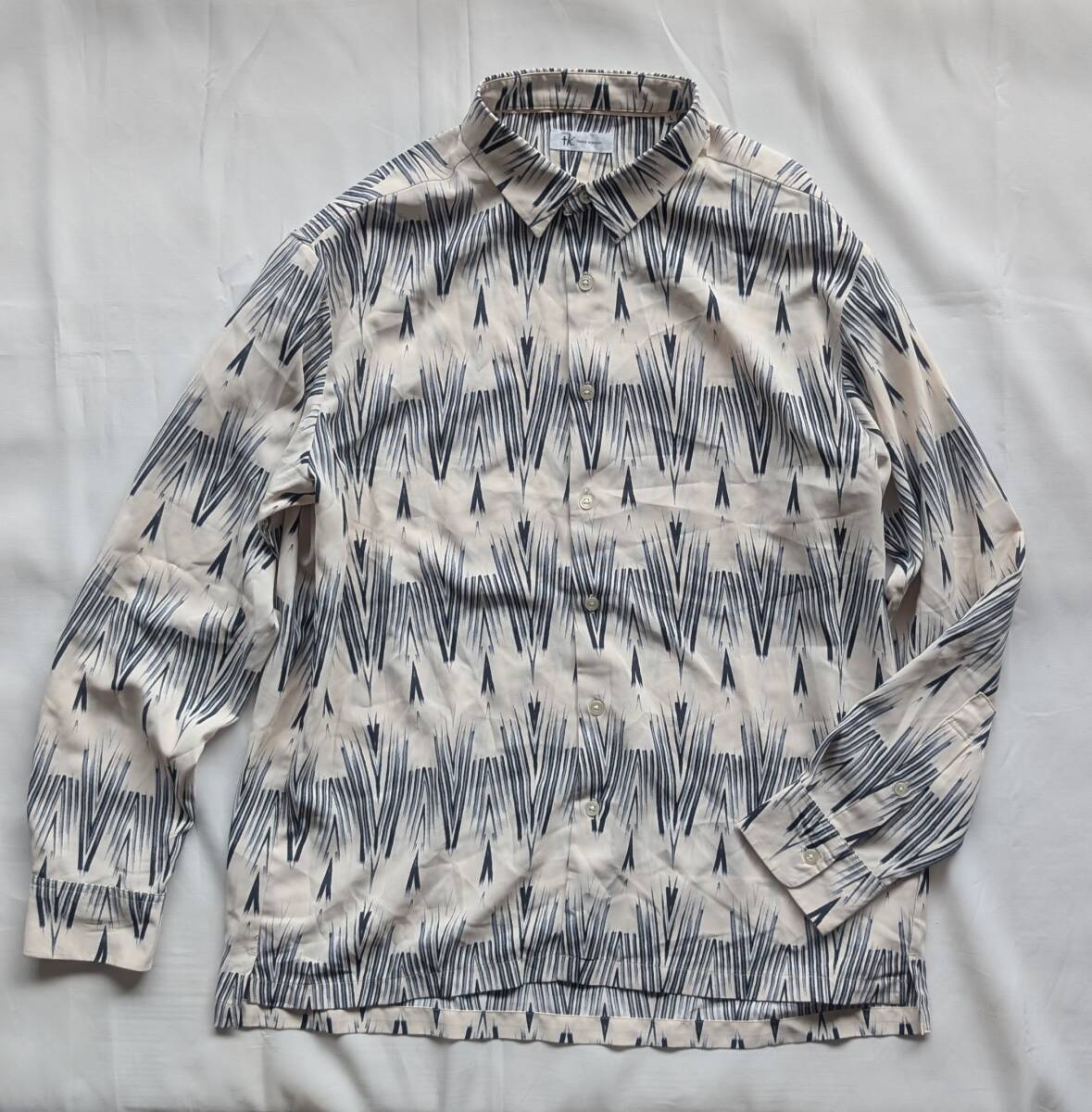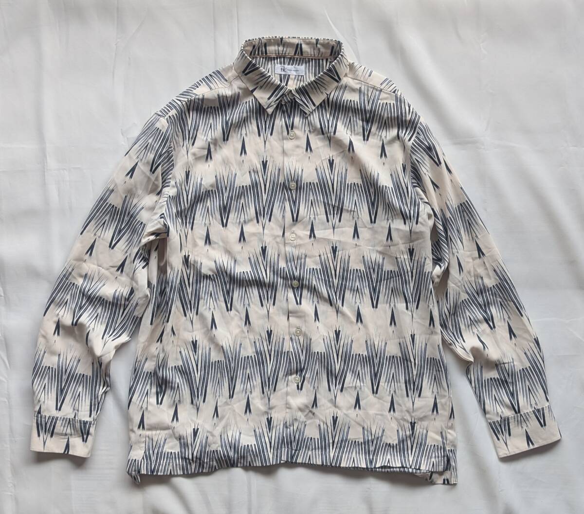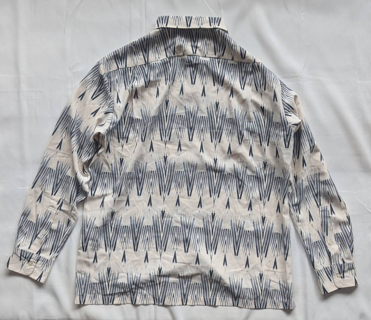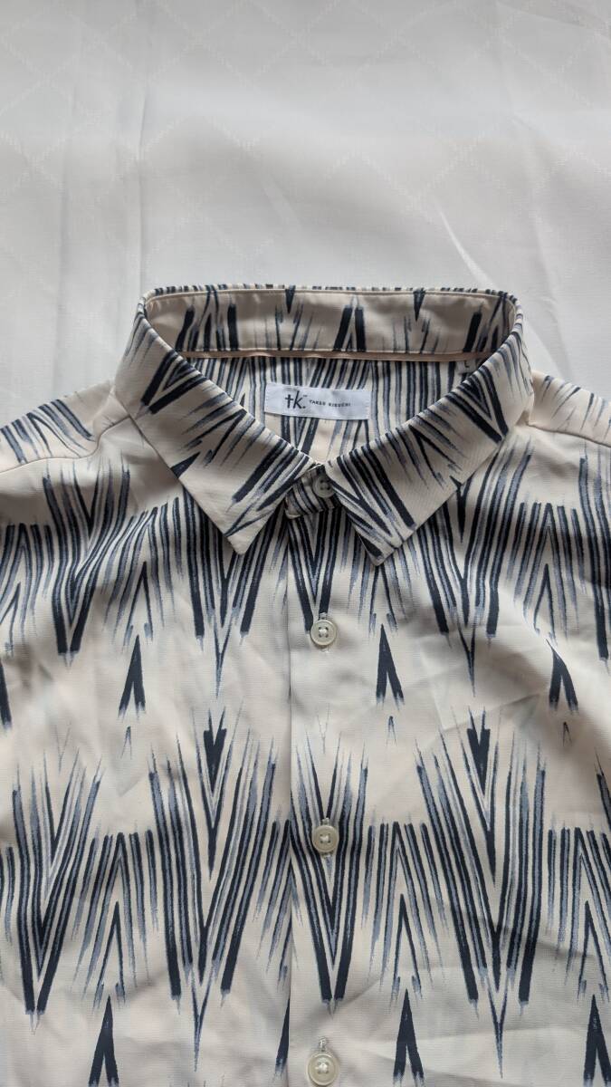 送料無料 TK. TAKEO KIKUCHI タケオキクチ 総柄 ドレスシャツ オフホワイト アイボリー ベース とろみ感 ポリエステル 長袖 シャツ