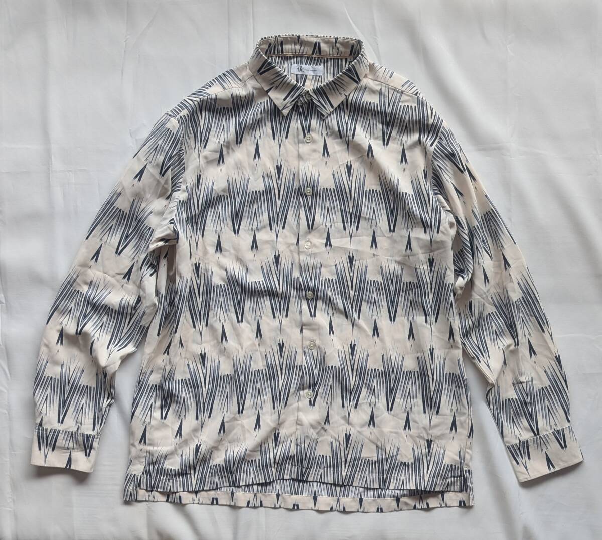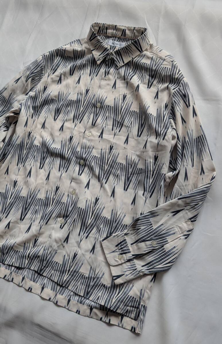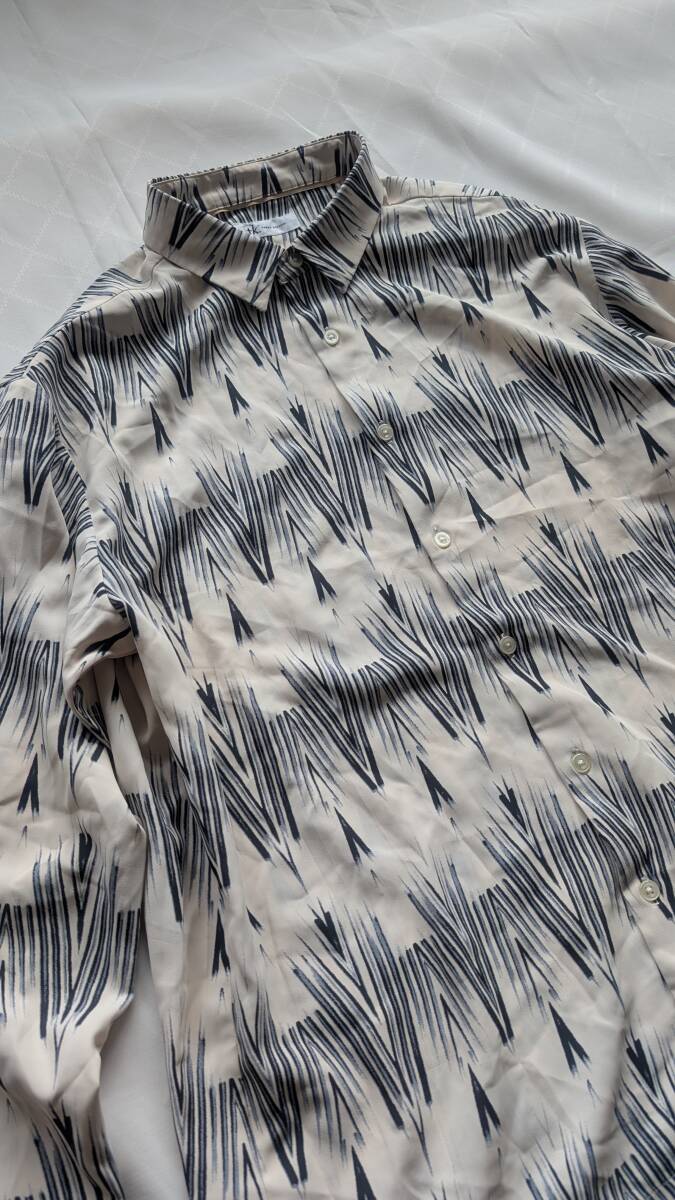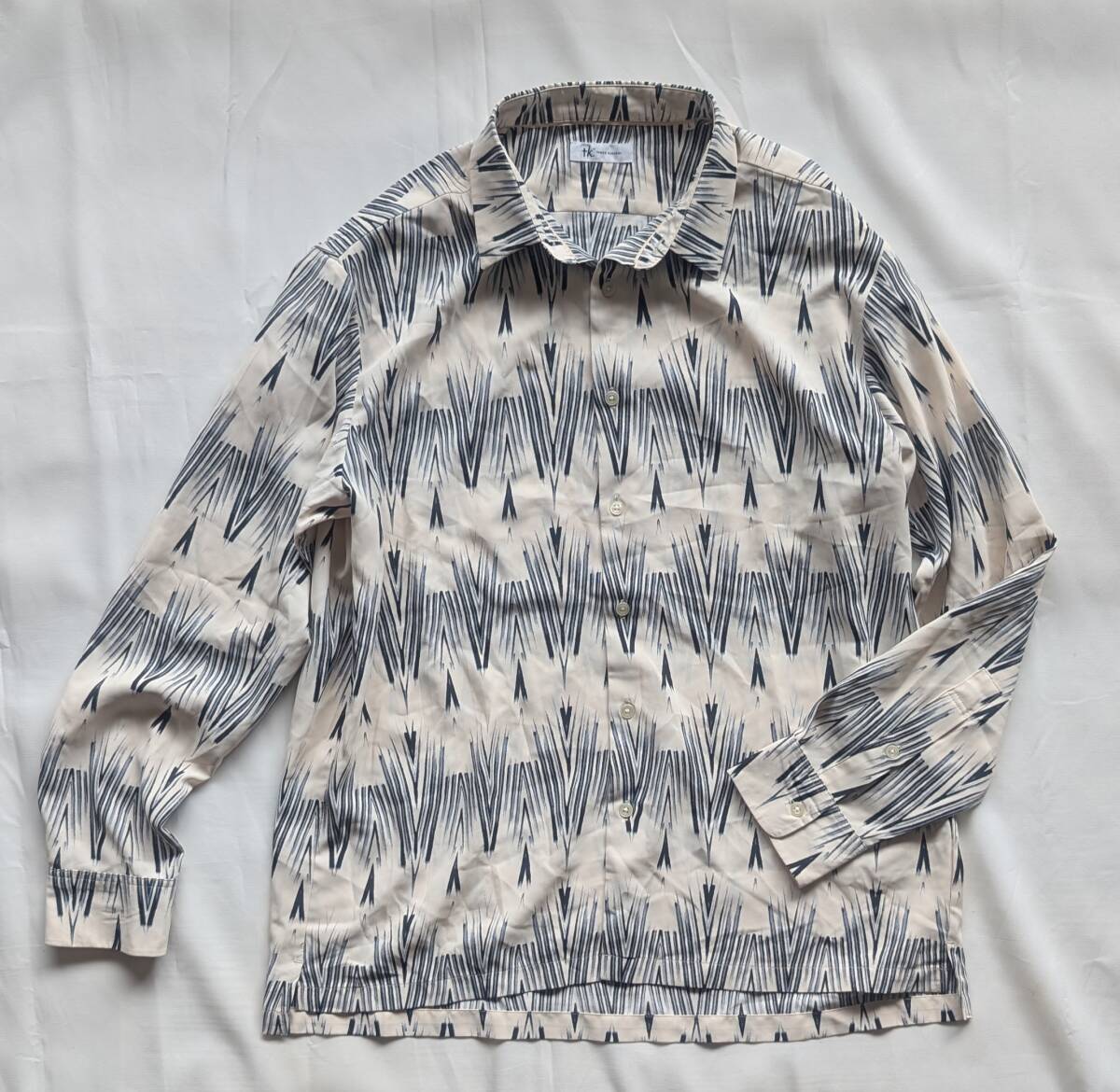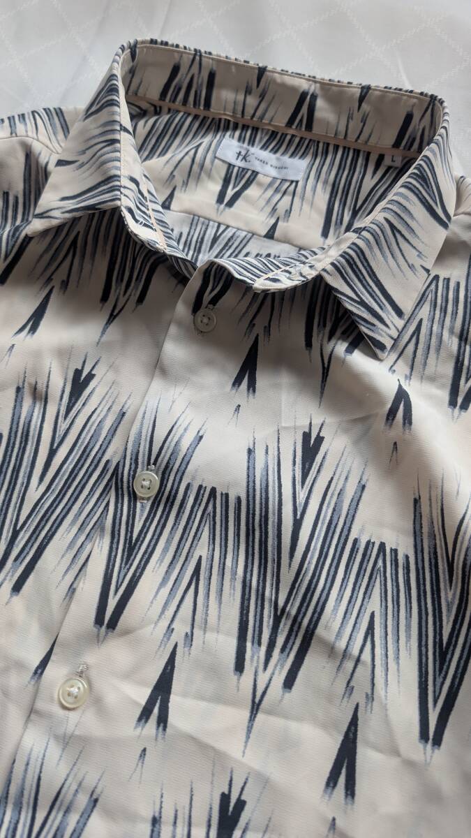 送料無料 TK. TAKEO KIKUCHI タケオキクチ 総柄 ドレスシャツ オフホワイト アイボリー ベース とろみ感 ポリエステル 長袖 シャツ