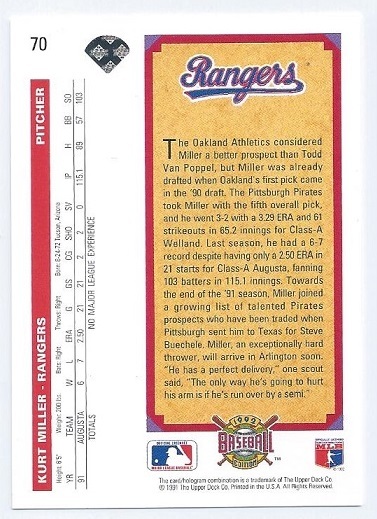 1999-2000年に阪神でプレーした来日外国人カート・ミラーのマイナーリーグカード