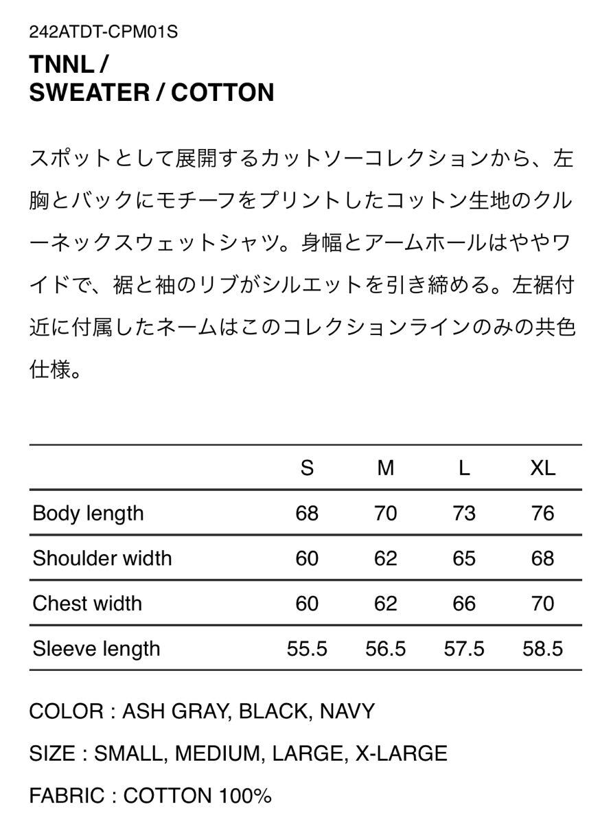 WTAPS 2024FW TNNL SWEATER BLACK Mサイズ
