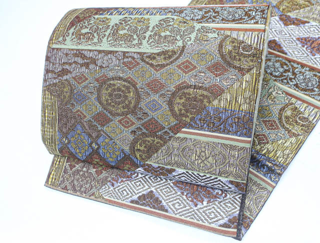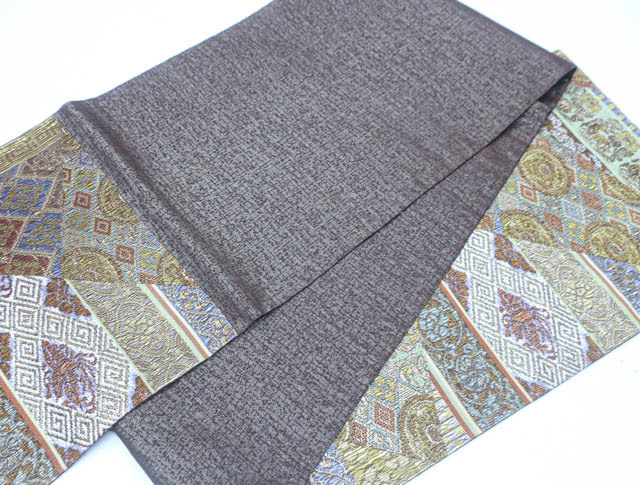 リサイクル商品ですが状態の良い綺麗なお品でございます。 地色はブロンズです。 1枚目の画像が近いお色かと思われます。 素材は正絹です。 |