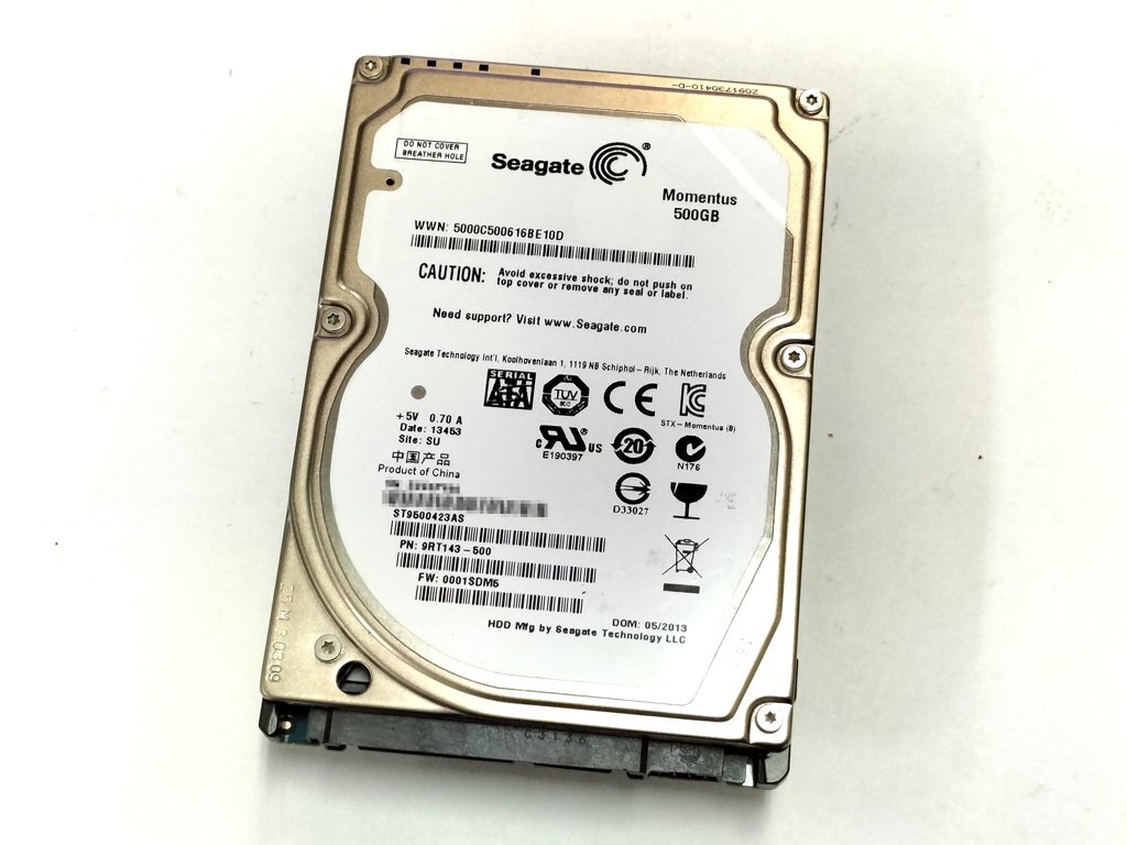 Seagate製の2.5インチHDD ST9500423AS です。