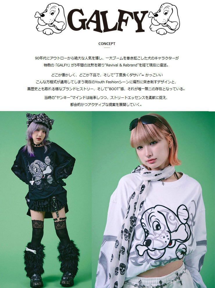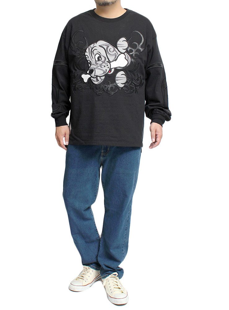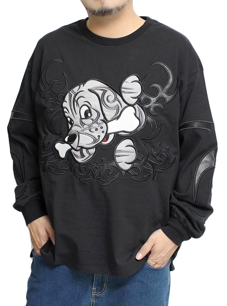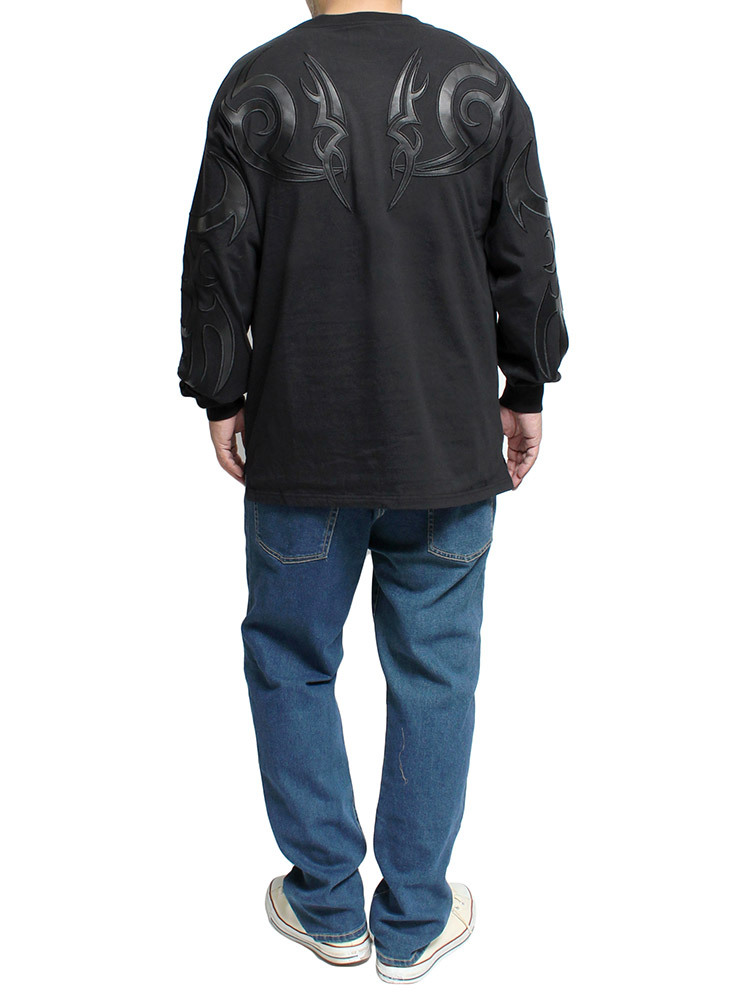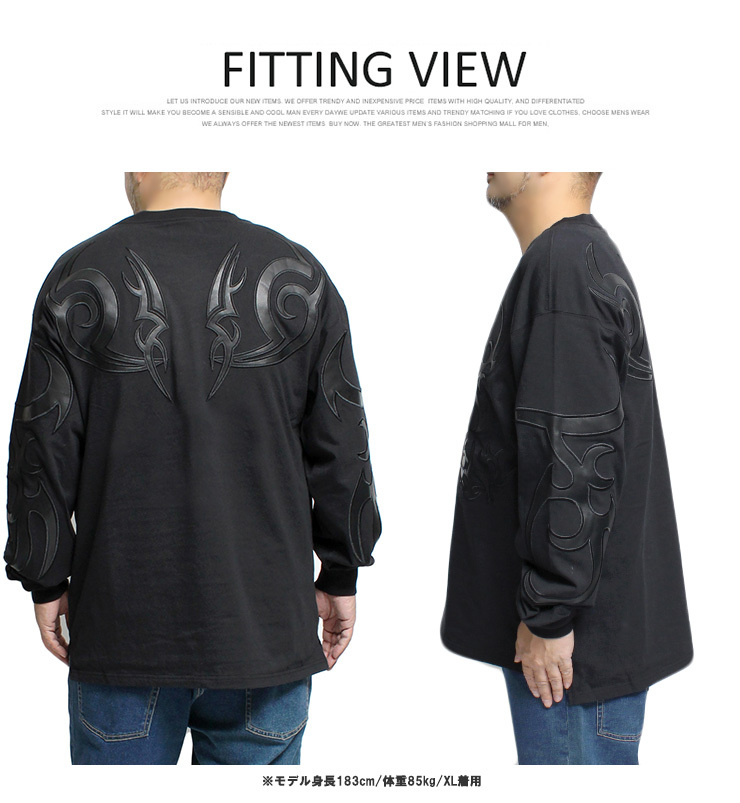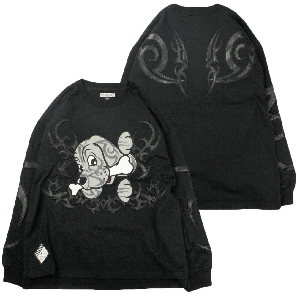 商品名 | 【新品】 中型犬 ブラック GALFY(ガルフィー) 長袖 Tシャツ メンズ ビッグシルエット トライバル柄 ロゴ プリント カットソー |