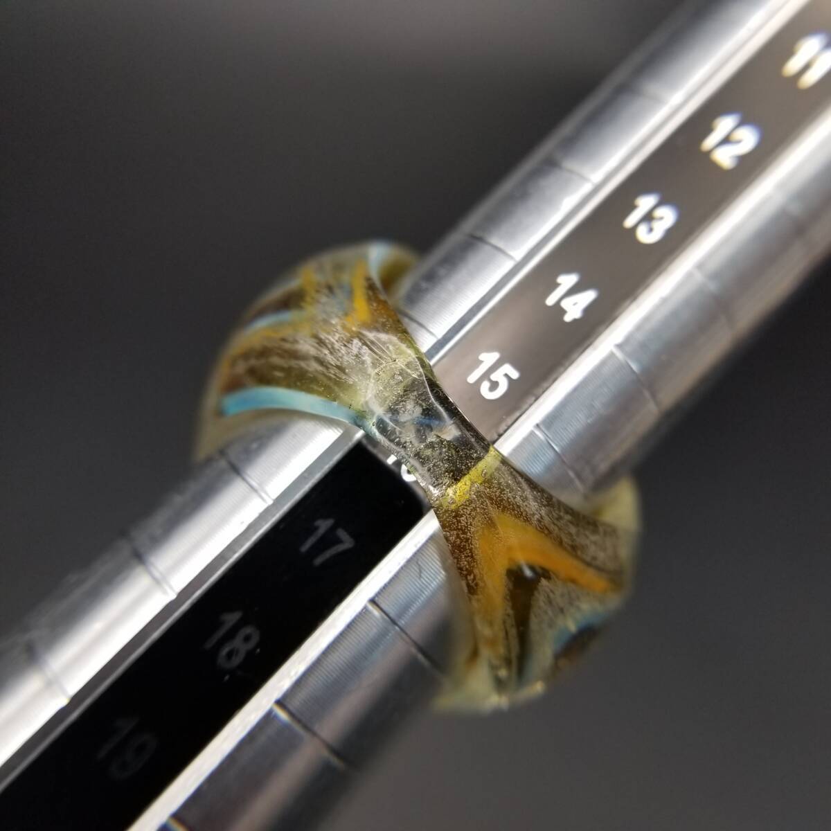 イタリア ヴィンテージ Murano ベネチアン ガラス 水色 オレンジ マーブル リング 指輪 ラメ感 VENETIAN GLASS 大ぶり 存在感 大きめサイズ Y20-X