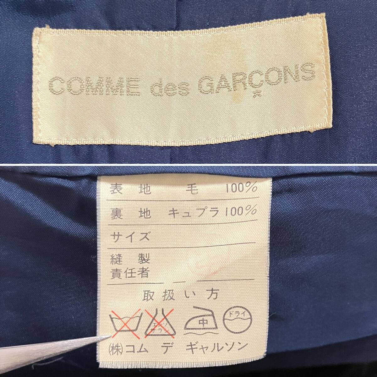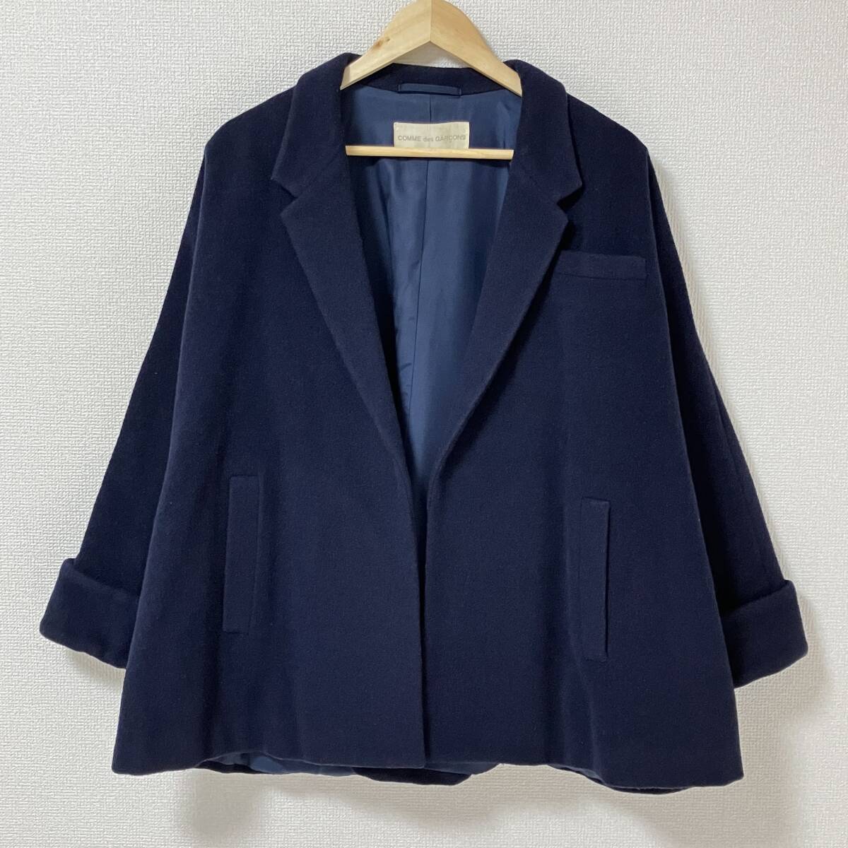 80s 最初期 COMME des GARCONS マント ワイド ハーフ コート ネイビー 紺 コムデギャルソン ジャケット VINTAGE archive 2186