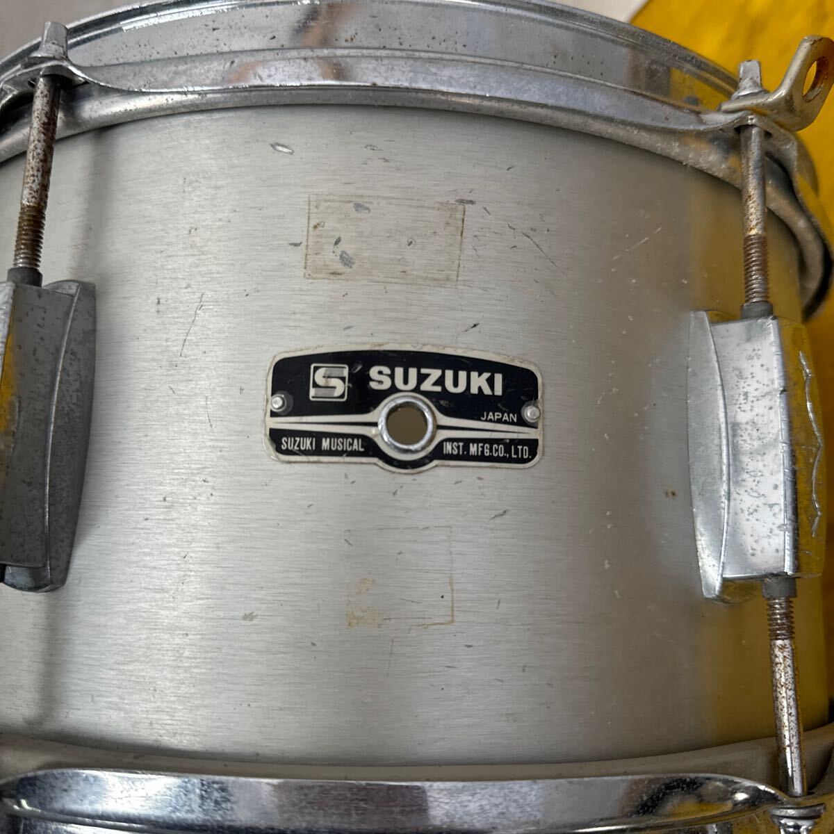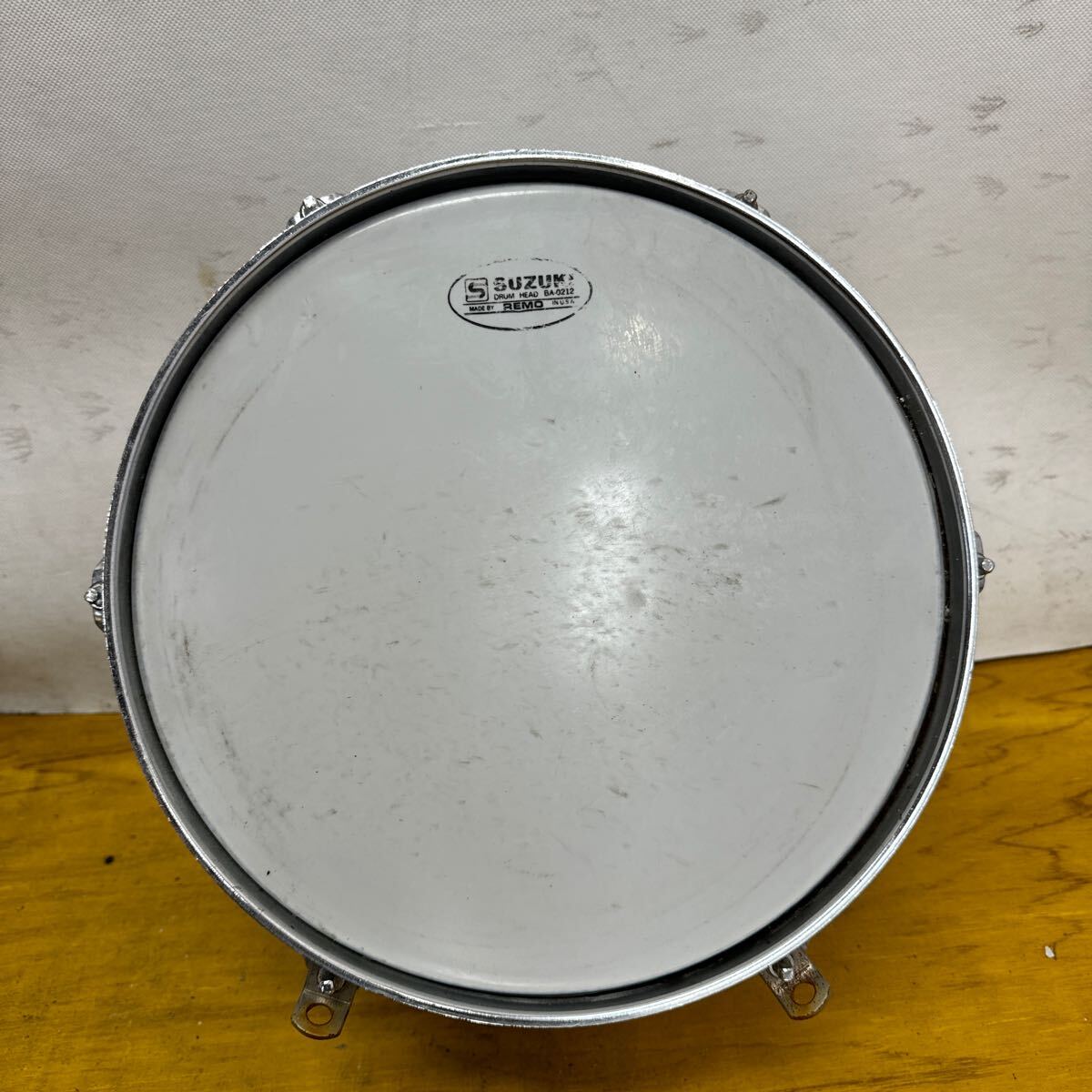 ・ SUZUKI スズキ スネアドラム マーチング アルミ ドラム 12インチ 現状 破れ無し シルバー 打楽器 BA-0212 太鼓 鼓笛隊 ④