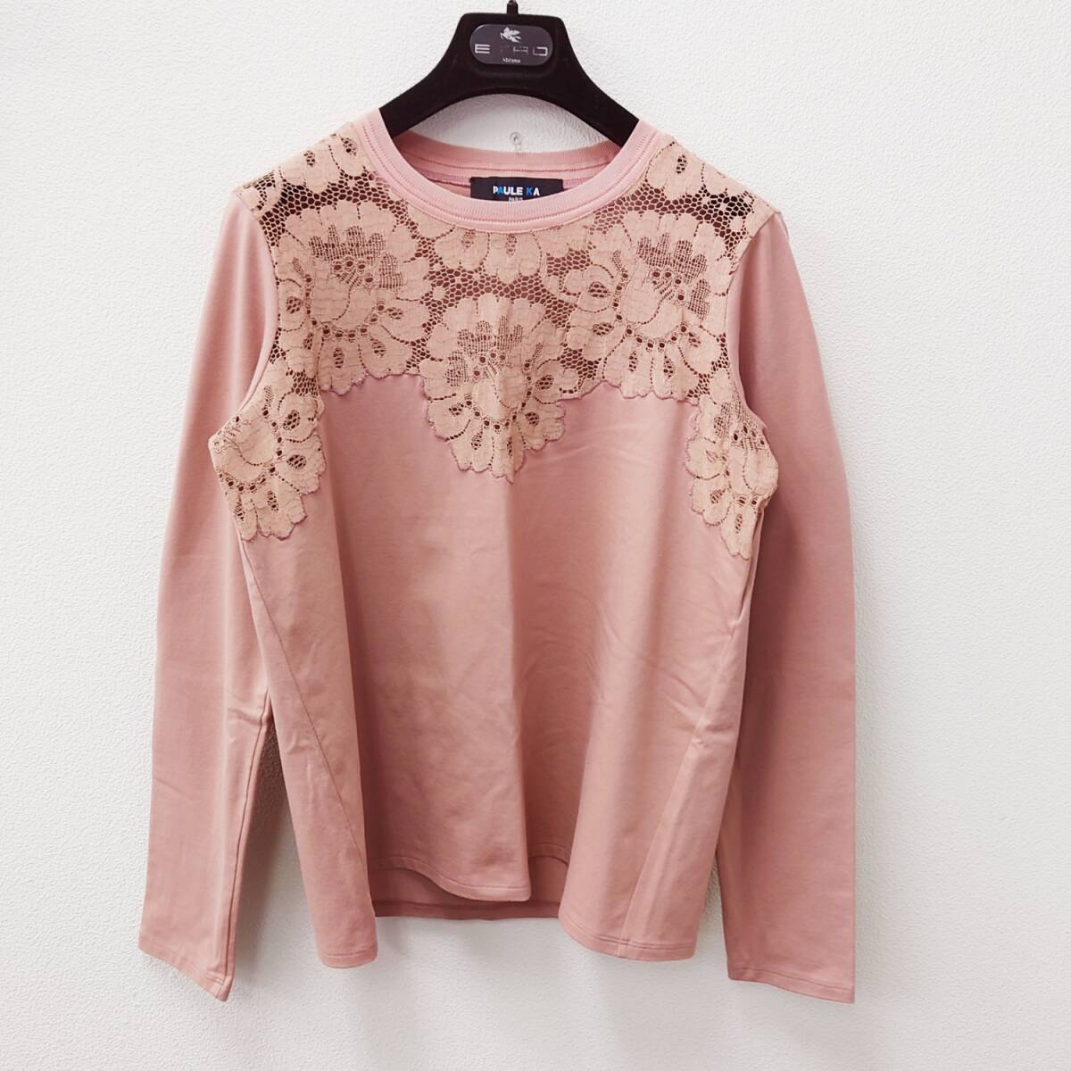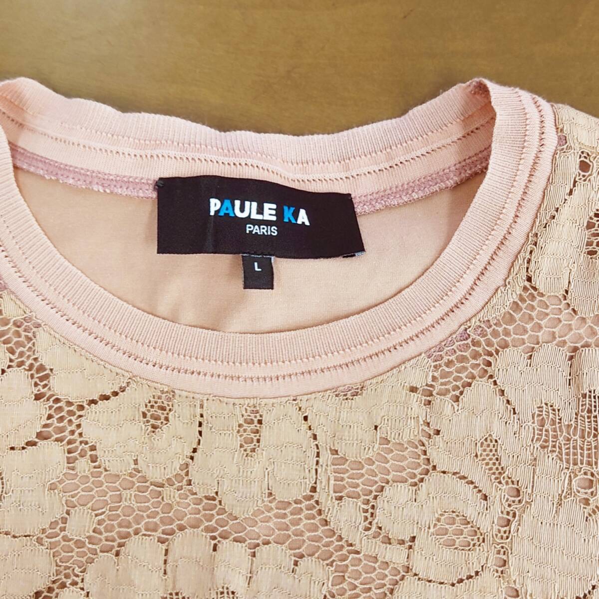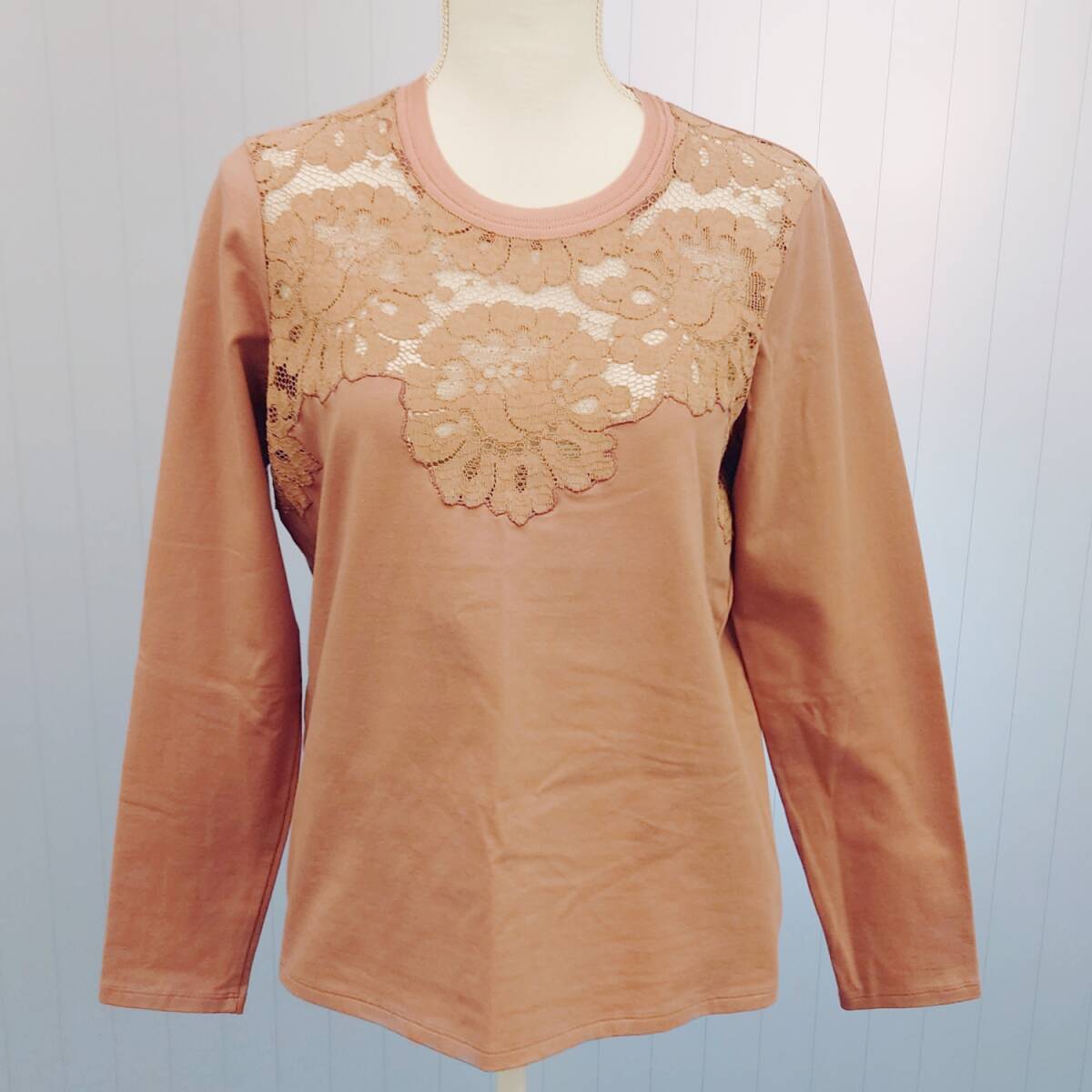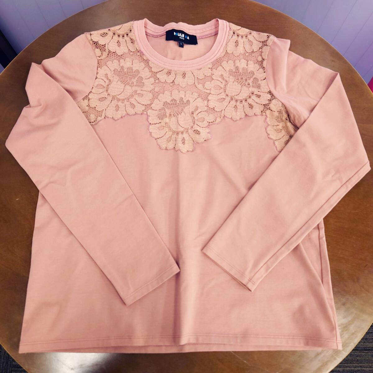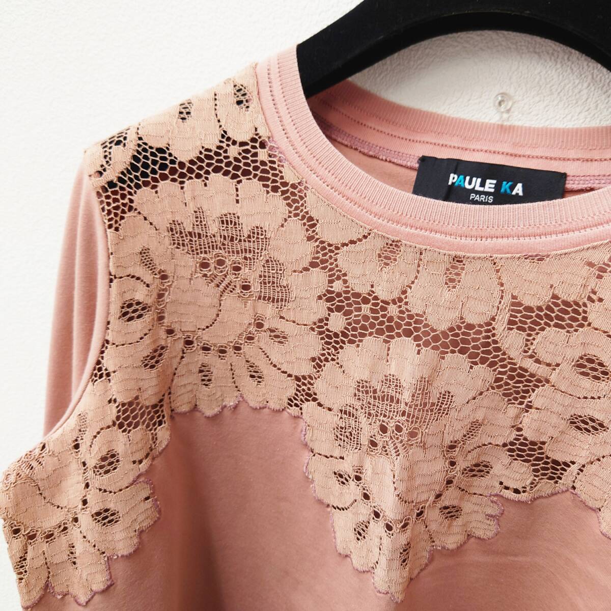 美品 PAULE KA 長袖 トップス Lサイズ カットソー ピンク レース コットン 綿 ポールカ 春 秋 冬