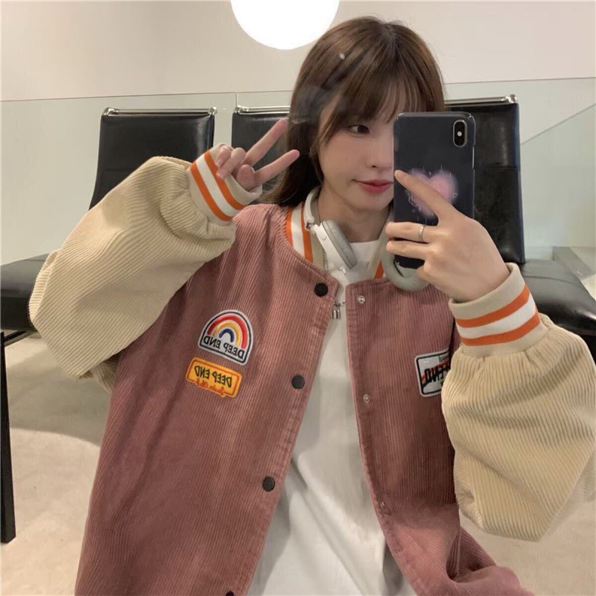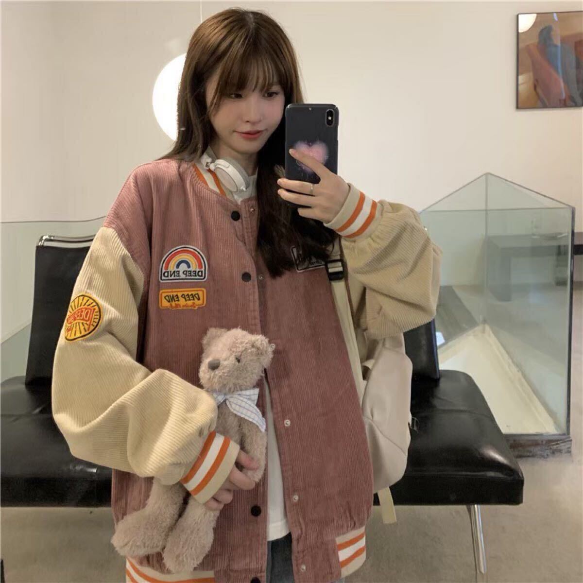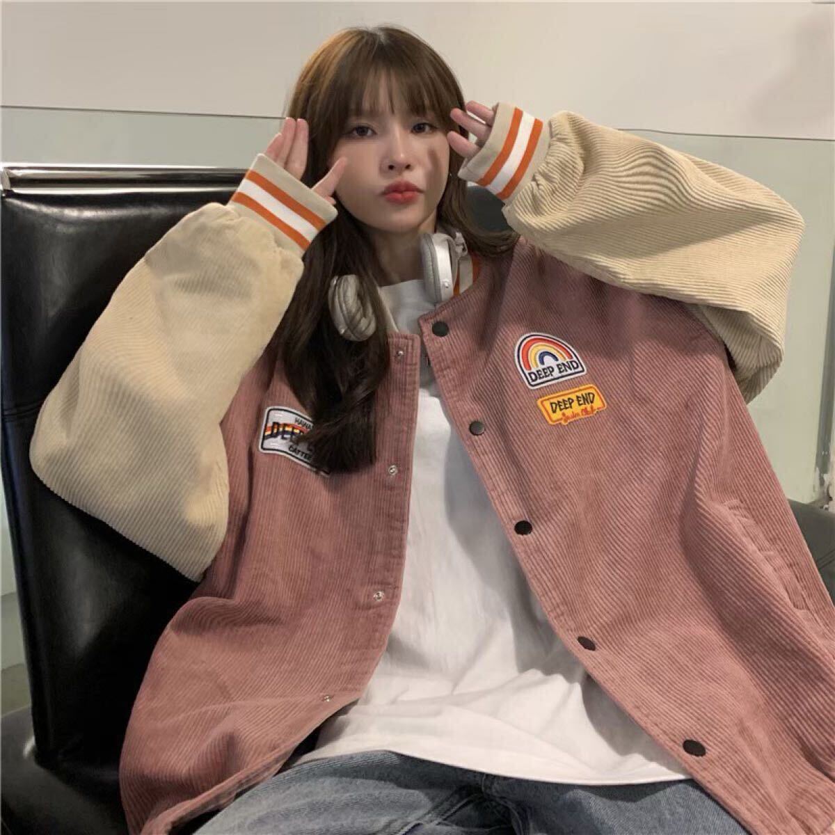 韓国ファッション 韓国 オルチャン オルチャンファッション 好きにもオススメの ゆったりとした ビッグシルエット が かわいい コーデュロイ ブルゾン です