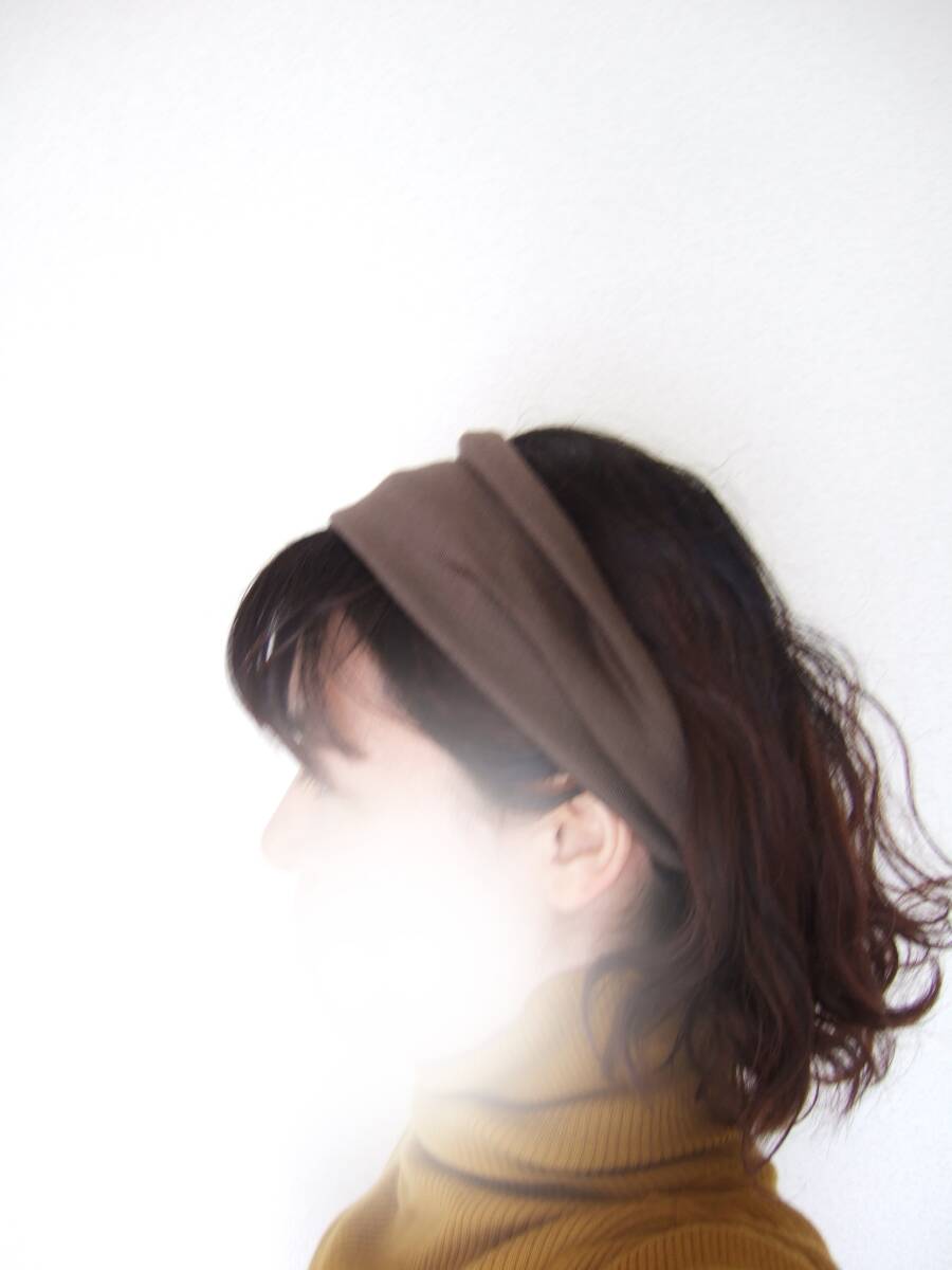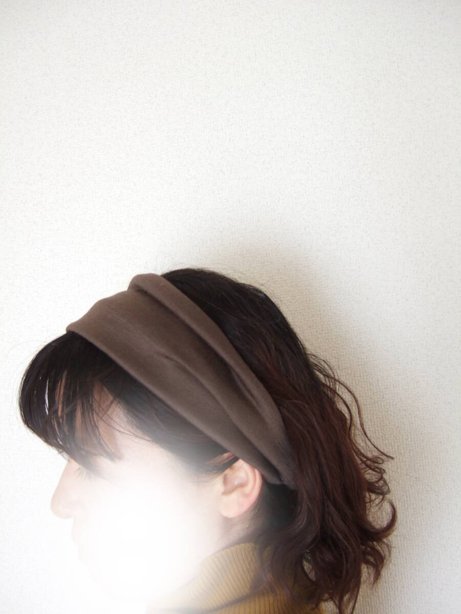 即決★ハンドメイド 秋冬に こっくり大人のブラウン艶っとウール100% ゆるっとニットのゆるターバン** 耳までかぶせて防寒に 冬支度