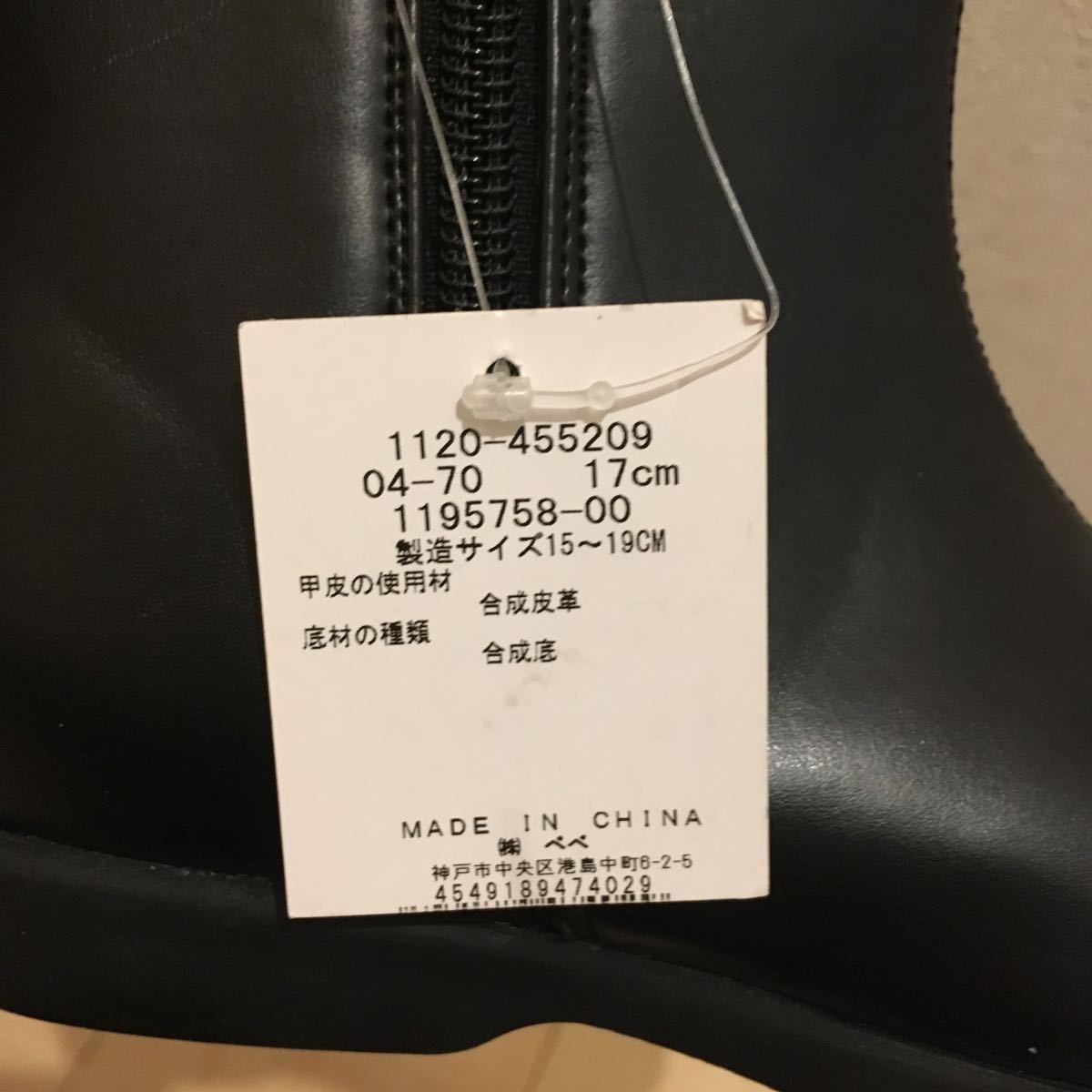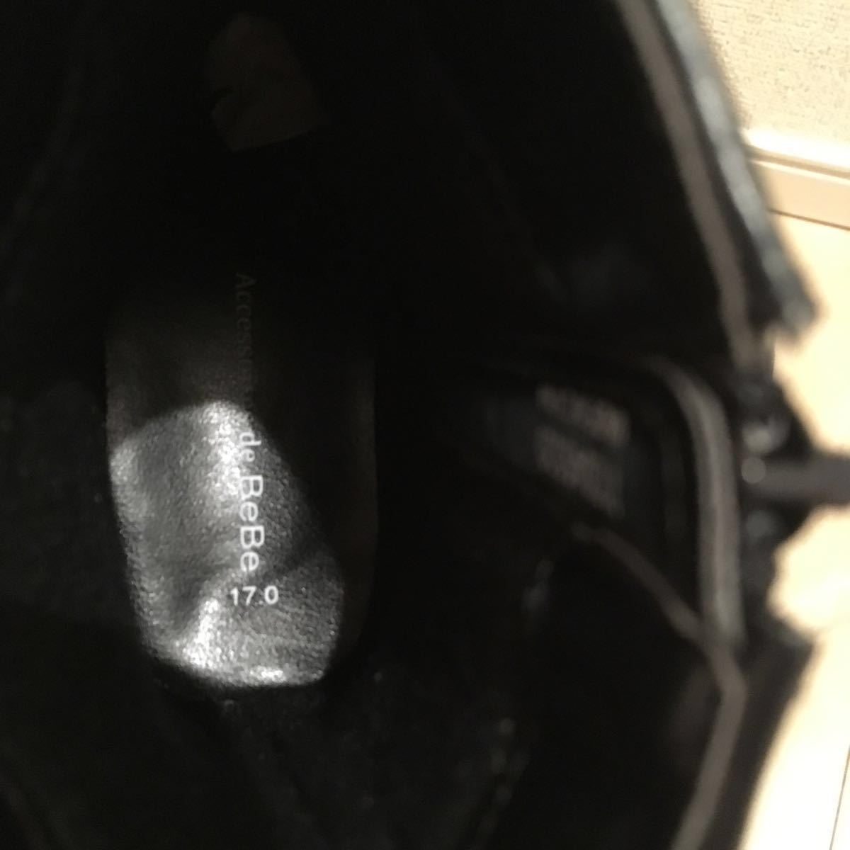 べべのレインブーツ、新品タグ付きです。レザー素材の高級感あるお品です。カラーはブラック、サイズは17.0cmです。