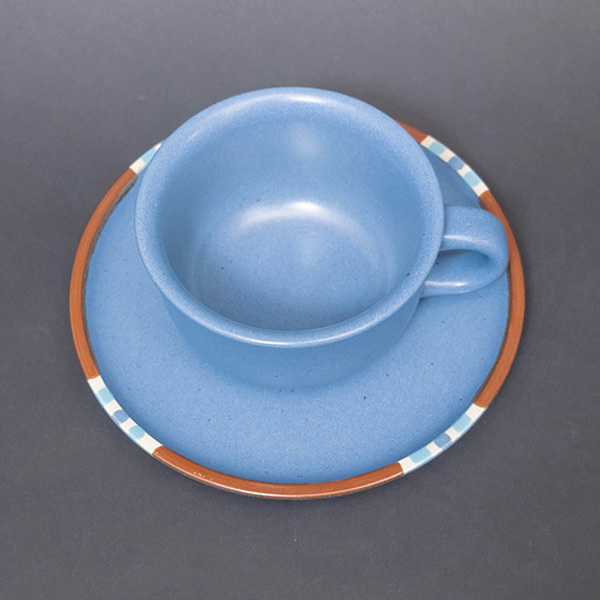 ダンスクのメサのカップ&ソーサー。 くすみのあるブルーのボディに茶色のラインが落ち着いた雰囲気のメサ。ポテっとした丸みのあるボディとツルツルとした滑らかなさわり心地が特徴です。ストーンウェアなので電子レンジ・食洗機も使用できます。 ■サイズ カップ:直径98 × 高さ58mm、ソーサー:直径156mm ■付属品 なし ■状態 B(良品):特に目立つダメージのない、状態の良いお品物です。 |