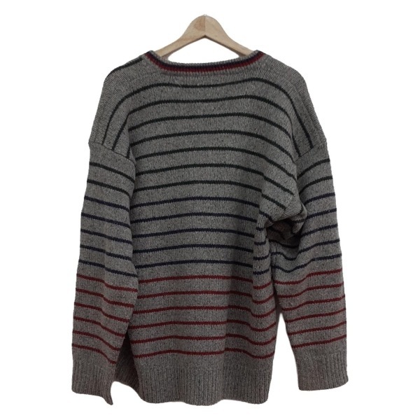 トミーヒルフィガー TOMMY HILFIGER 長袖セーター/ニット サイズM/M M - グレーベージュ×ダークネイビー×レッド メンズ Vネック/ボーダー