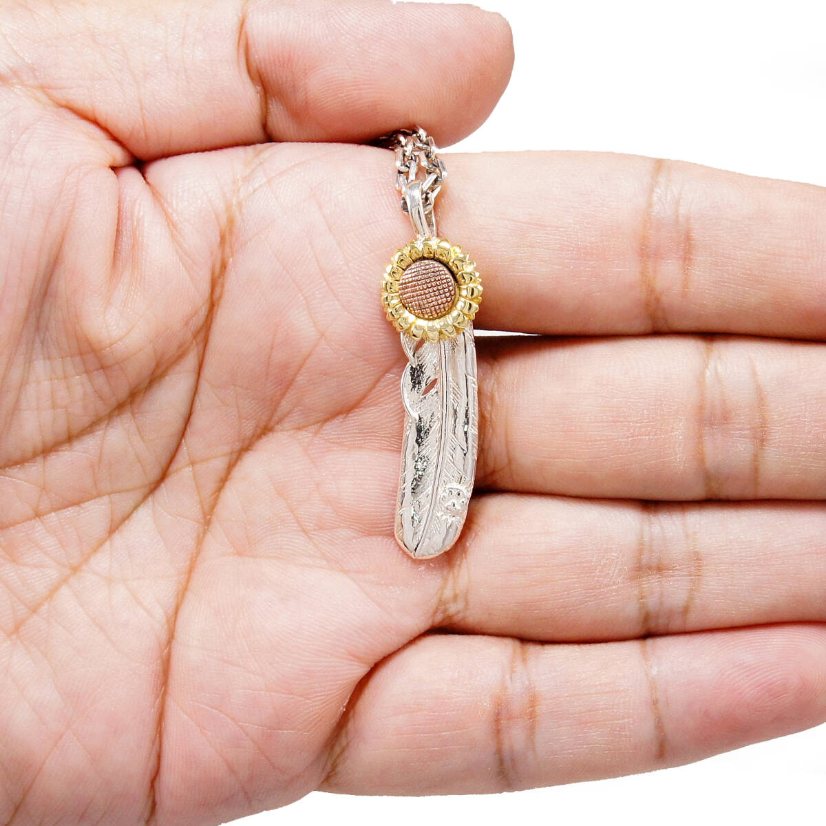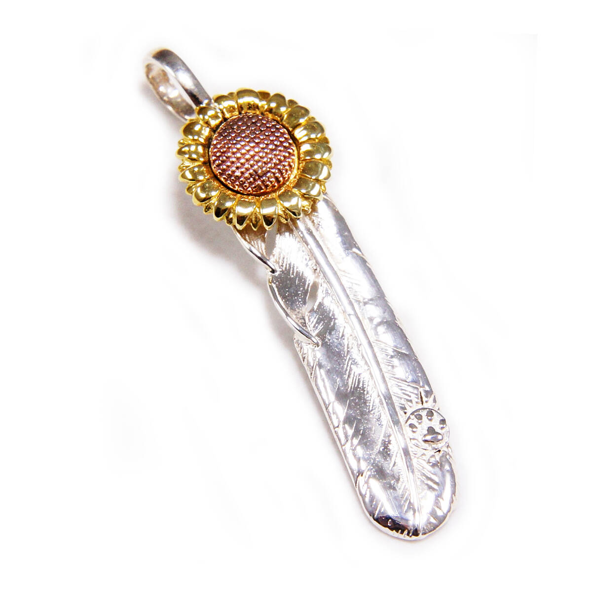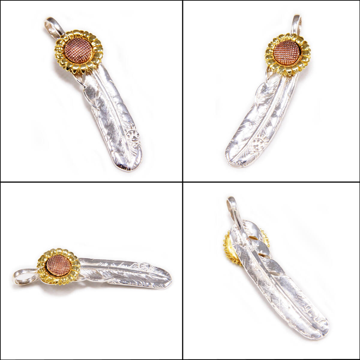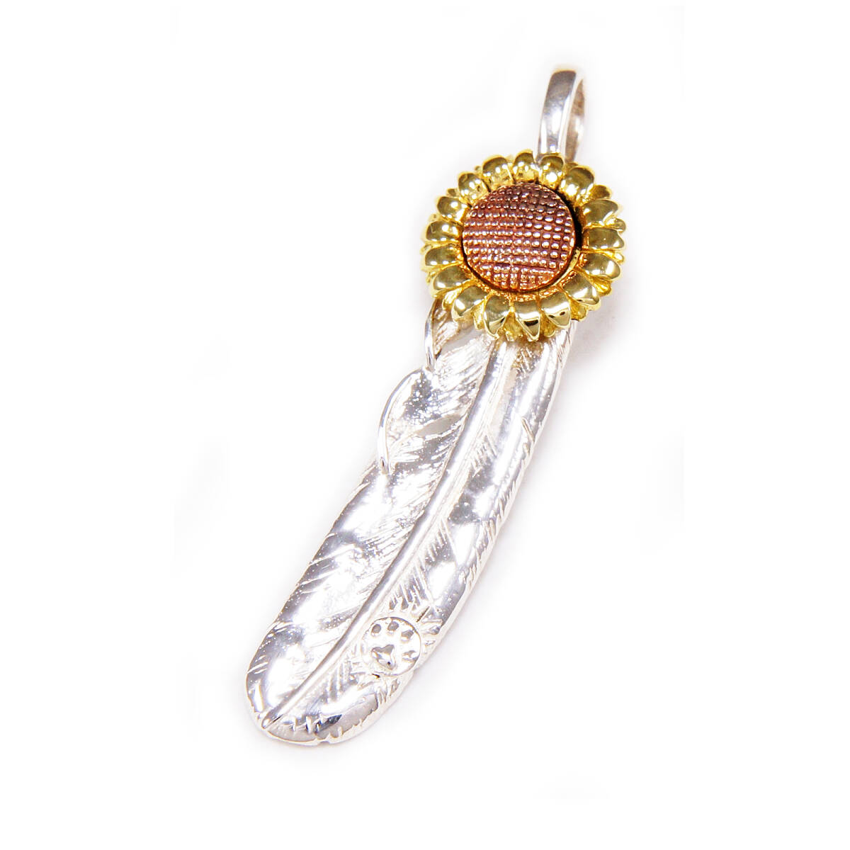 フェザーひまわり 青銅 真鍮 925シルバー ペンダント 925刻印あり GB-138