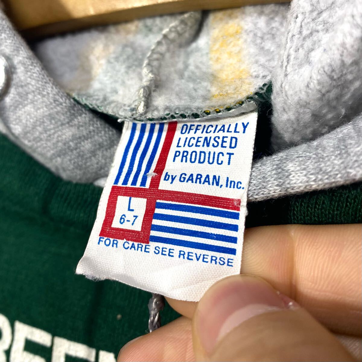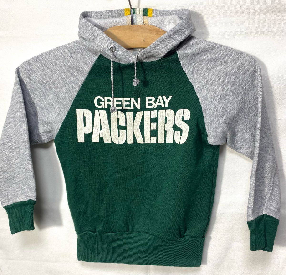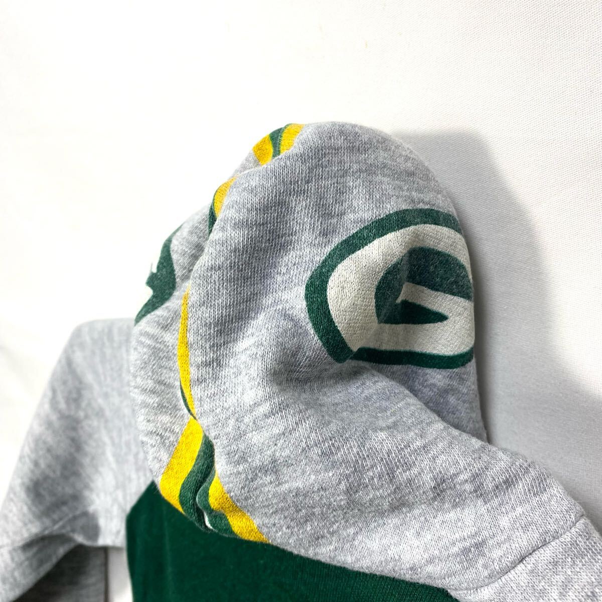 ■ 子供用 80s 90s ビンテージ NFL PACKERS パッカーズ ロゴイラスト スウェット フーディー 切り替え サイズL グレー グリーン アメフト■