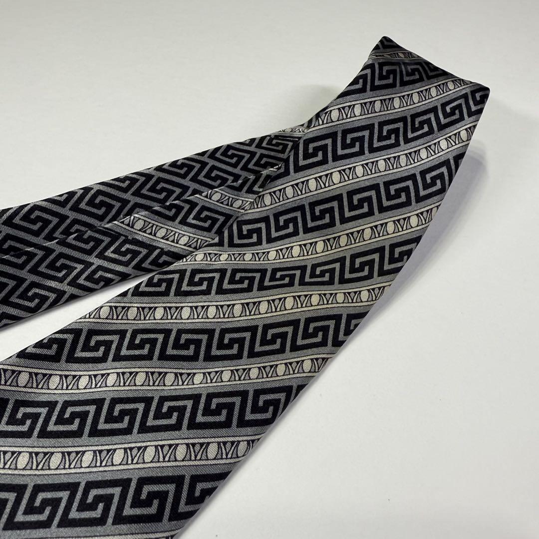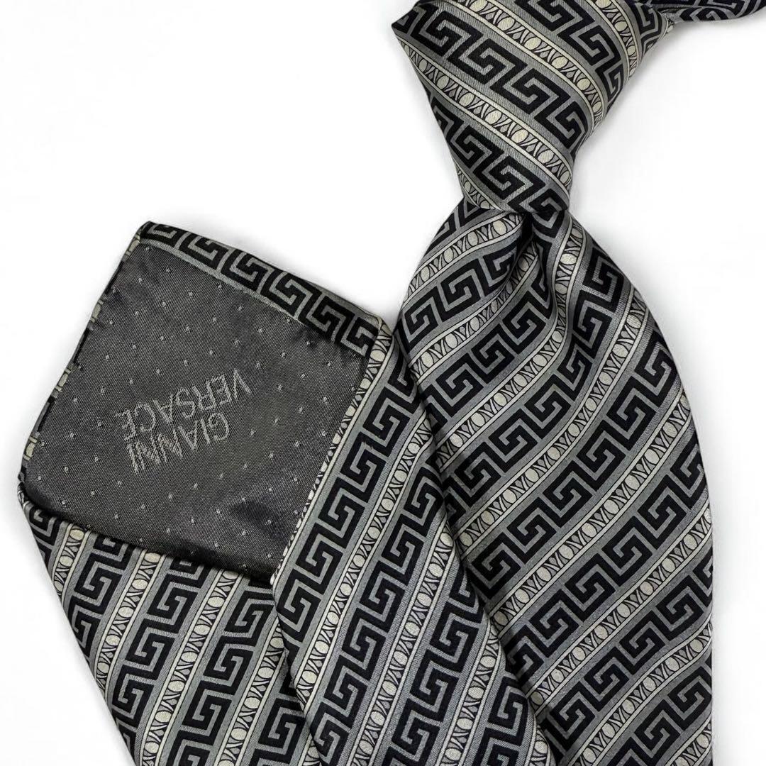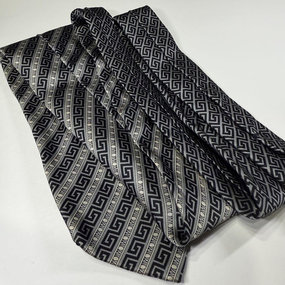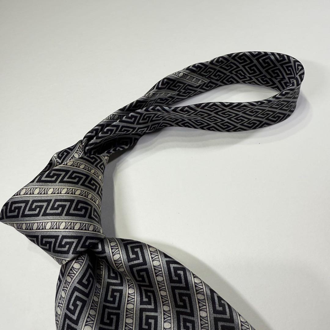 【美品・希少】GIANNI VERSACE ジャンニ ヴェルサーチ シルク ネクタイ レジメンタル ストライプ フォーマル 紳士 シルバーグレー系 S2516