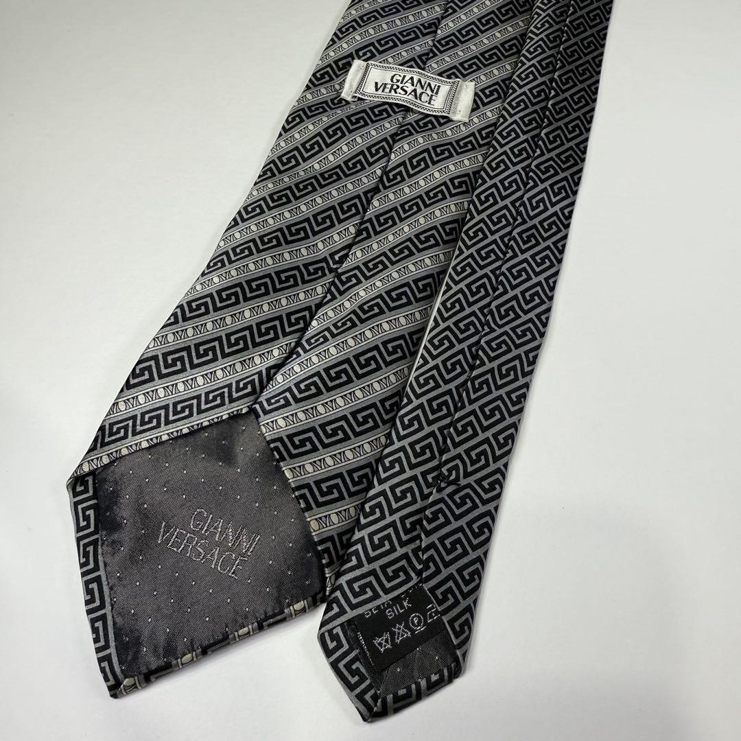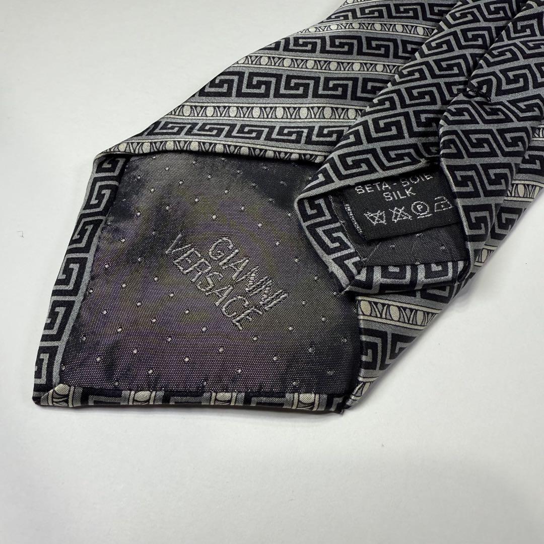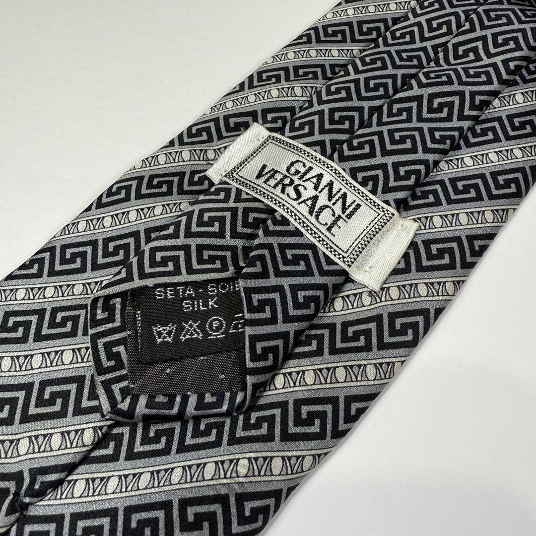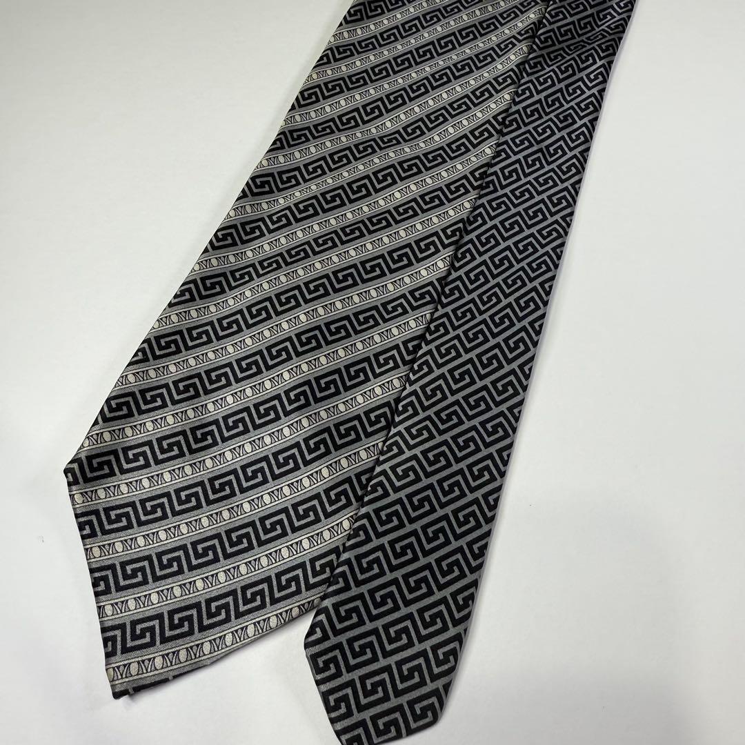 【美品・希少】GIANNI VERSACE ジャンニ ヴェルサーチ シルク ネクタイ レジメンタル ストライプ フォーマル 紳士 シルバーグレー系 S2516
