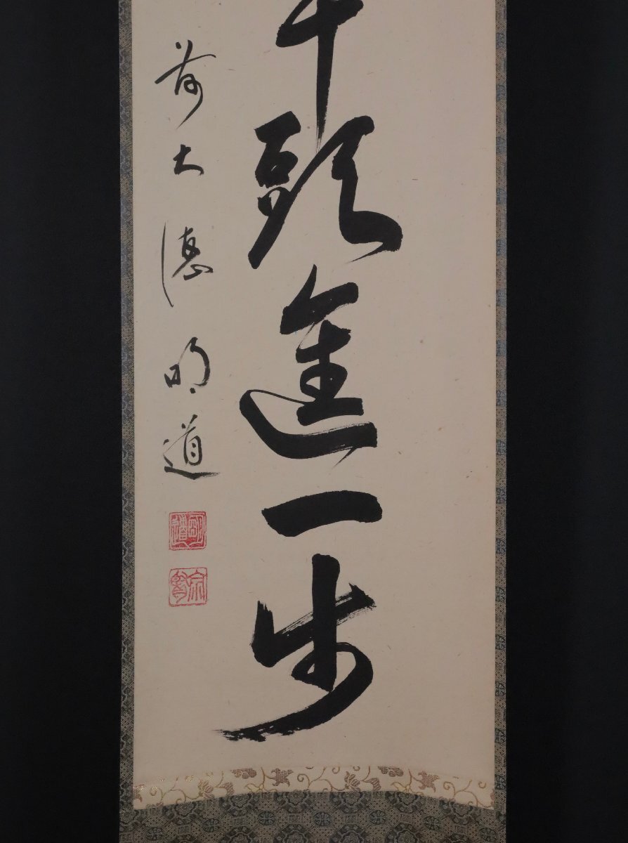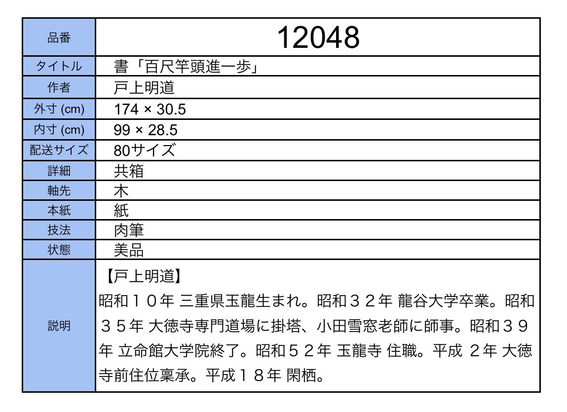 【模写】吉】12048 戸上明道 書 百尺竿頭進一歩 共箱 臨済宗 大徳寺 玉龍寺住職 小田雪窓師事 仏教 茶掛け 茶道具 禅語 掛軸 掛け軸 骨董品