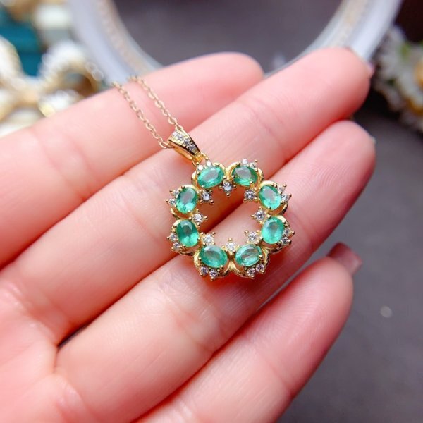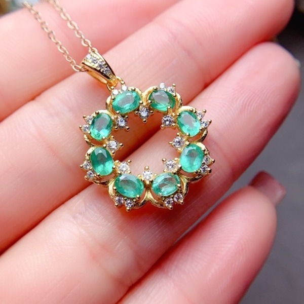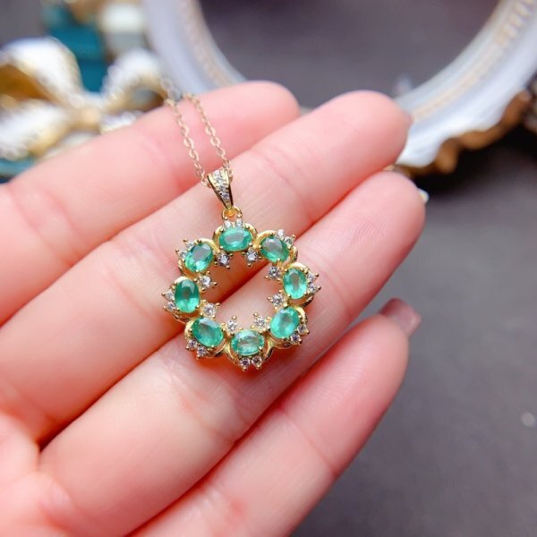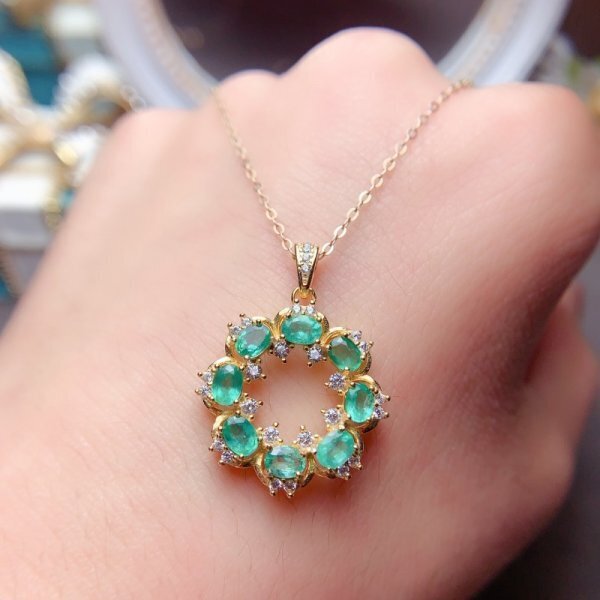 女性用925スターリングシルバーのナチュラルエメラルドペンダント、チャーム