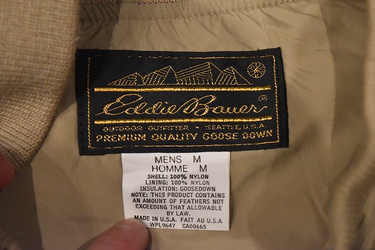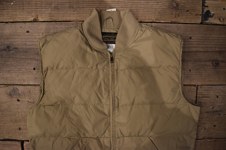 グッドカラーアイテム◎USA製80sビンテージEddie Bauerエディバウアー グースダウンベストMベージュ系アメリカ製アメカジアウトドアt408