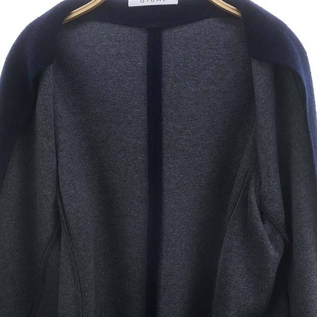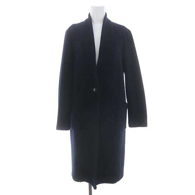 クチューム QTUME ロングコート ノーカラー アウター ウール 40 紺 ネイビー ■OS レディース
