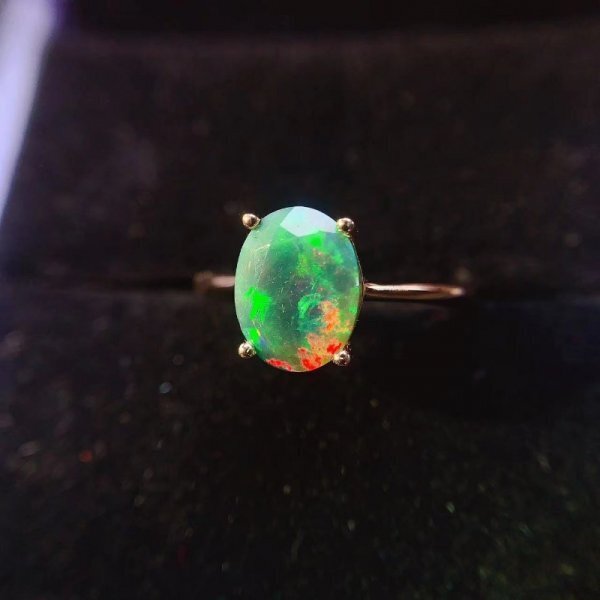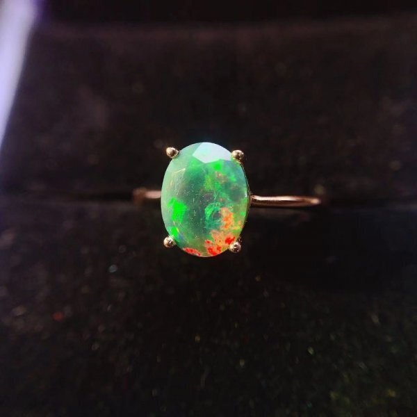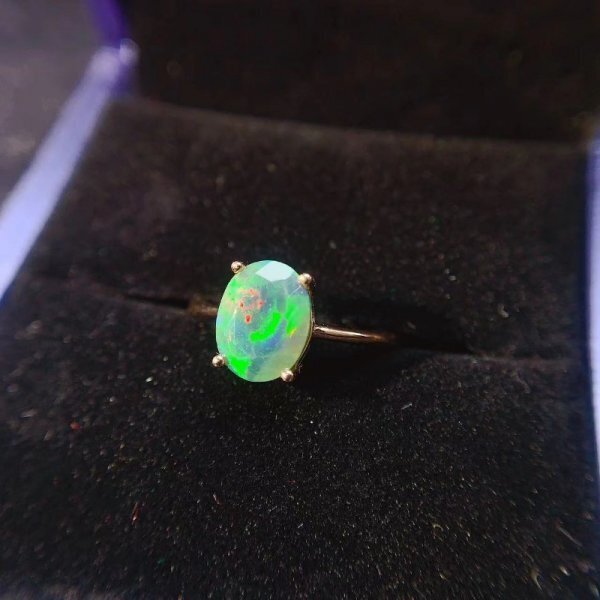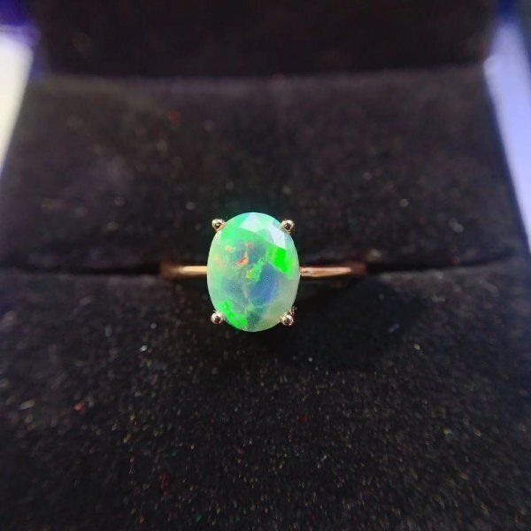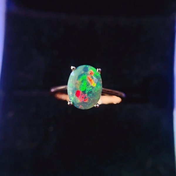 ナチュラルオパールエンゲージリング、7x9mm、925スターリングシルバー