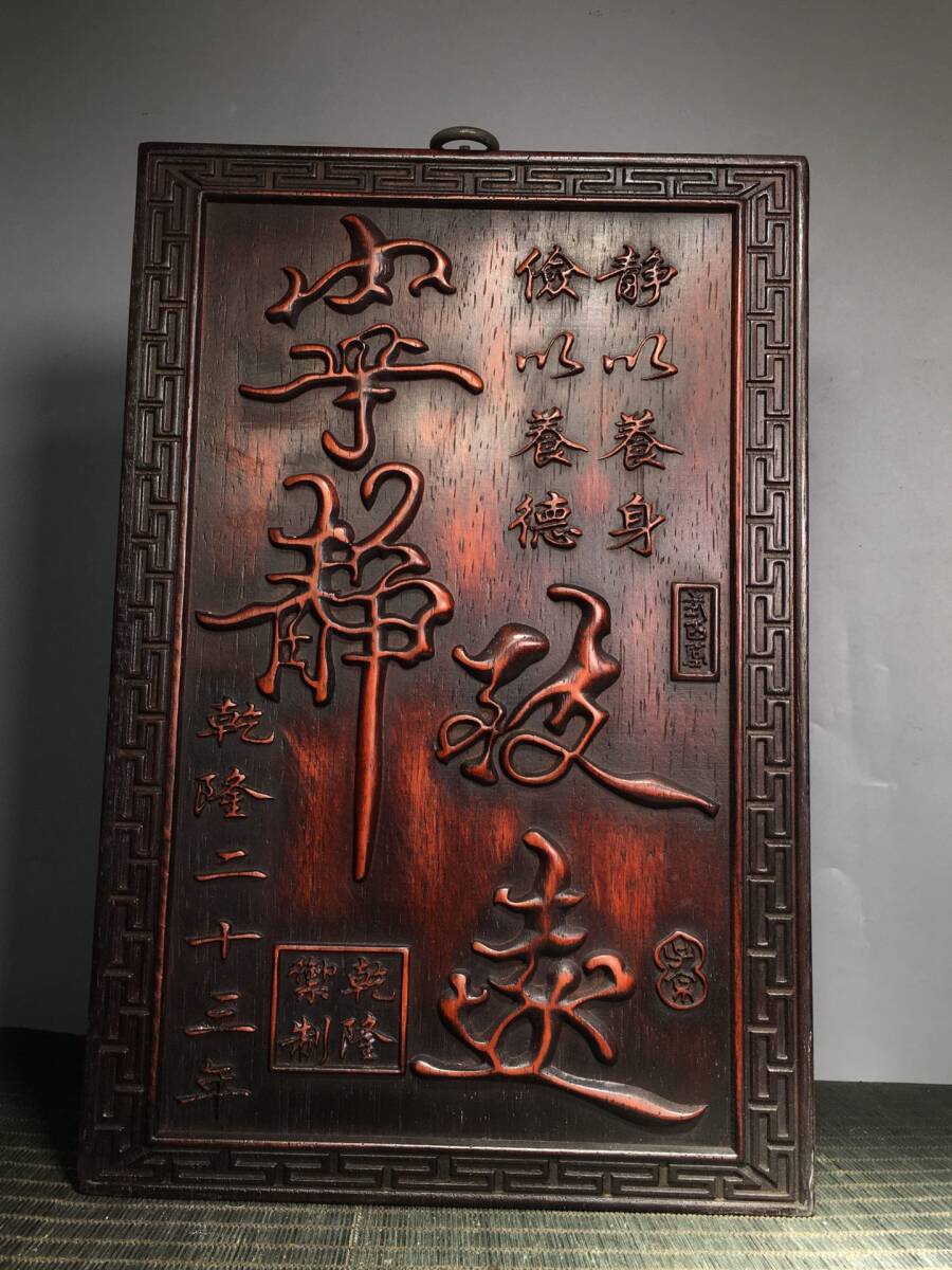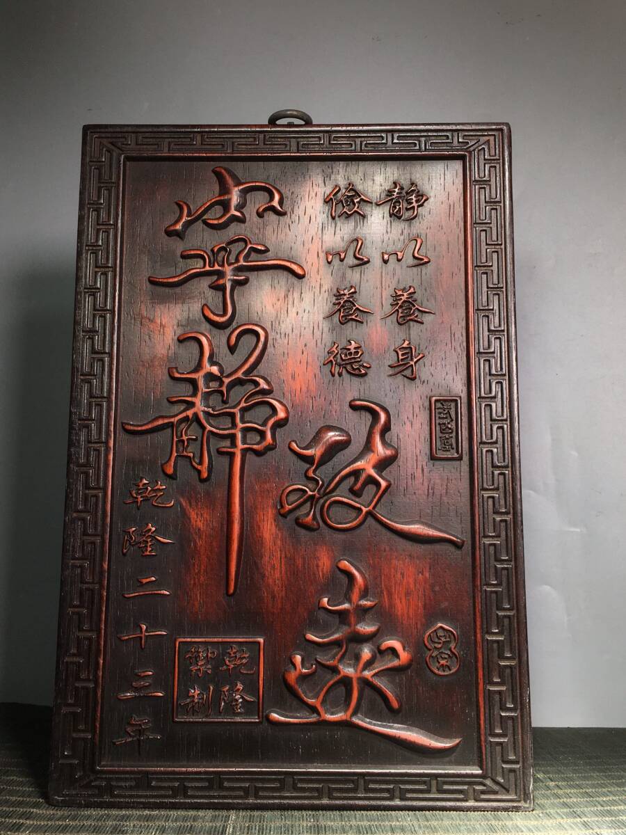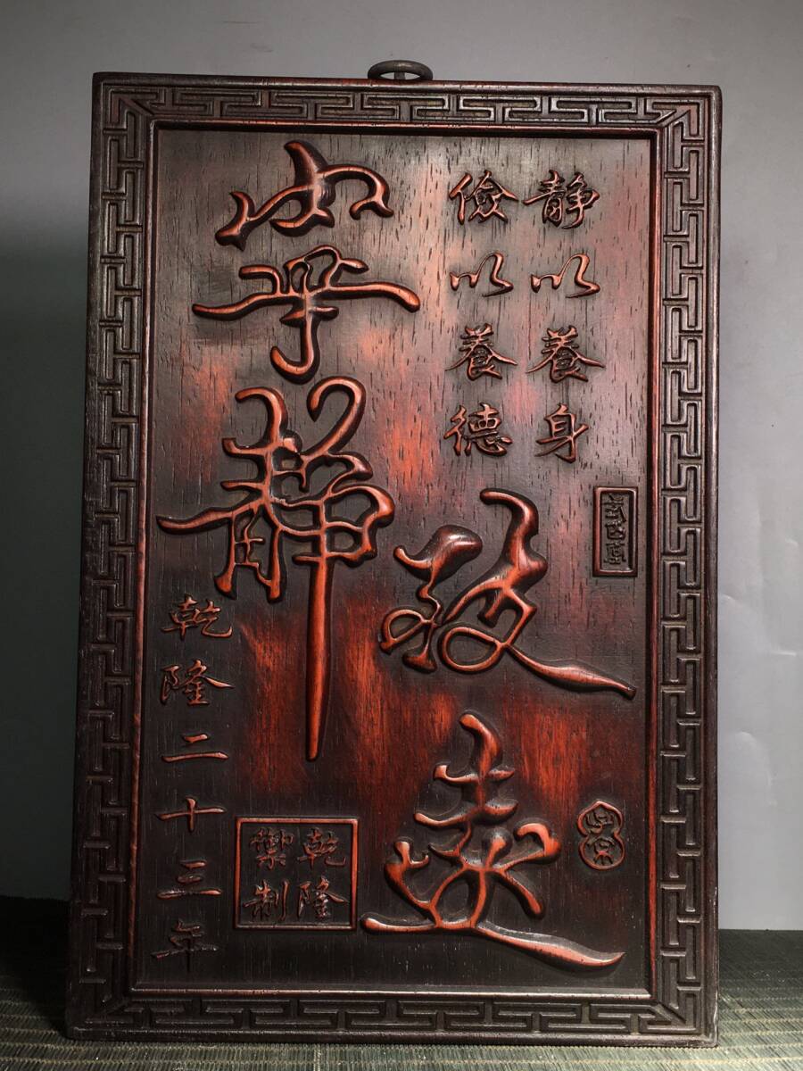 *珍品旧蔵* 清 檀木 彫刻掛 滿金星牛毛紋清晰 置物 擺件 賞物 極細工 唐物 中国古玩 工芸品 ZK0302
