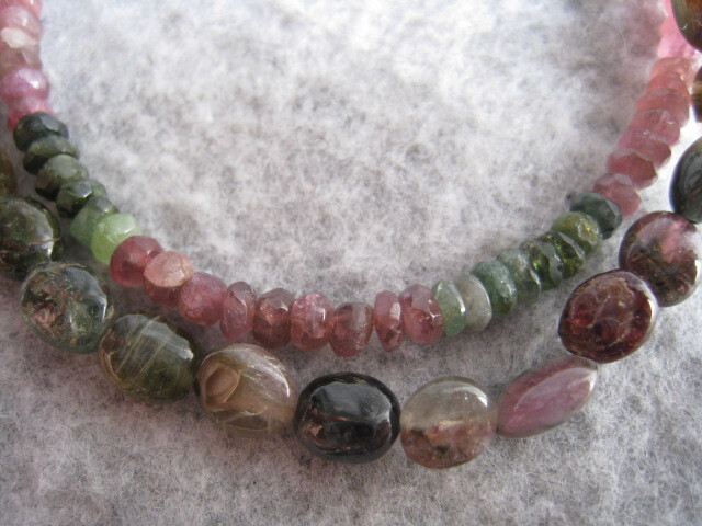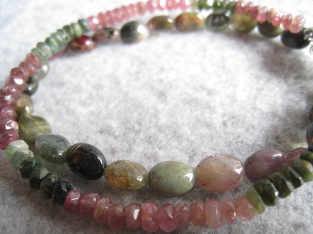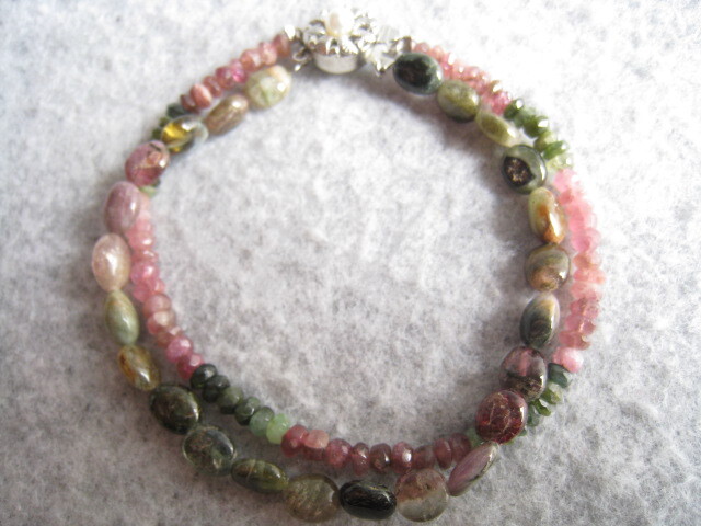 [SAMU]綺麗!!天然トルマリン幅6mmと4mm 二連長さ18cmブレスレット★美品!