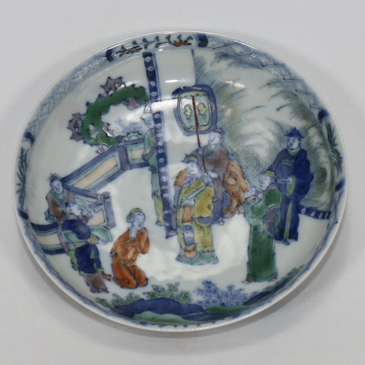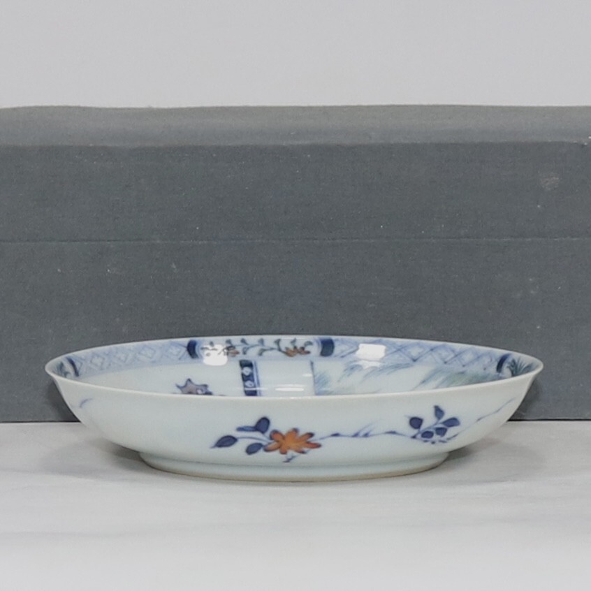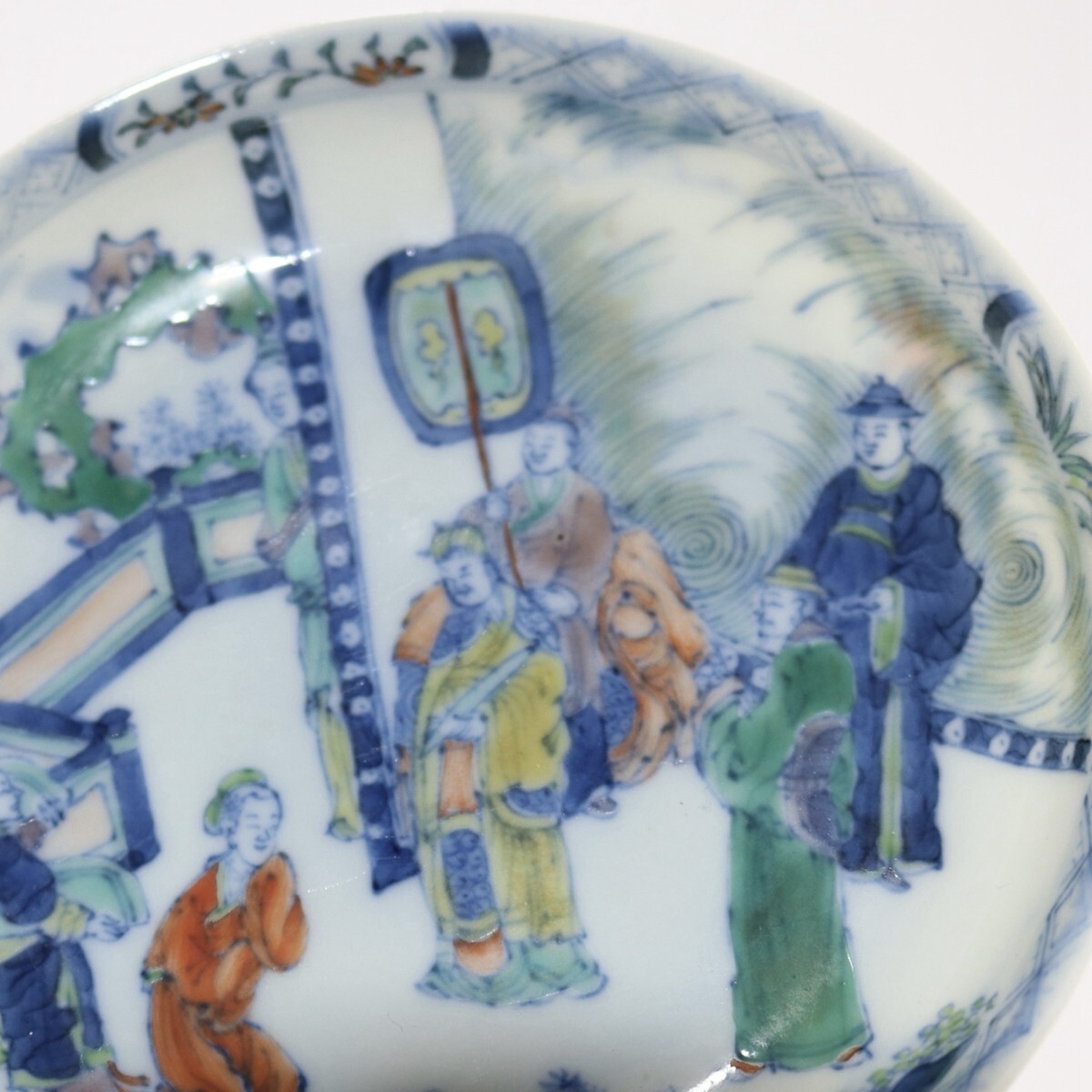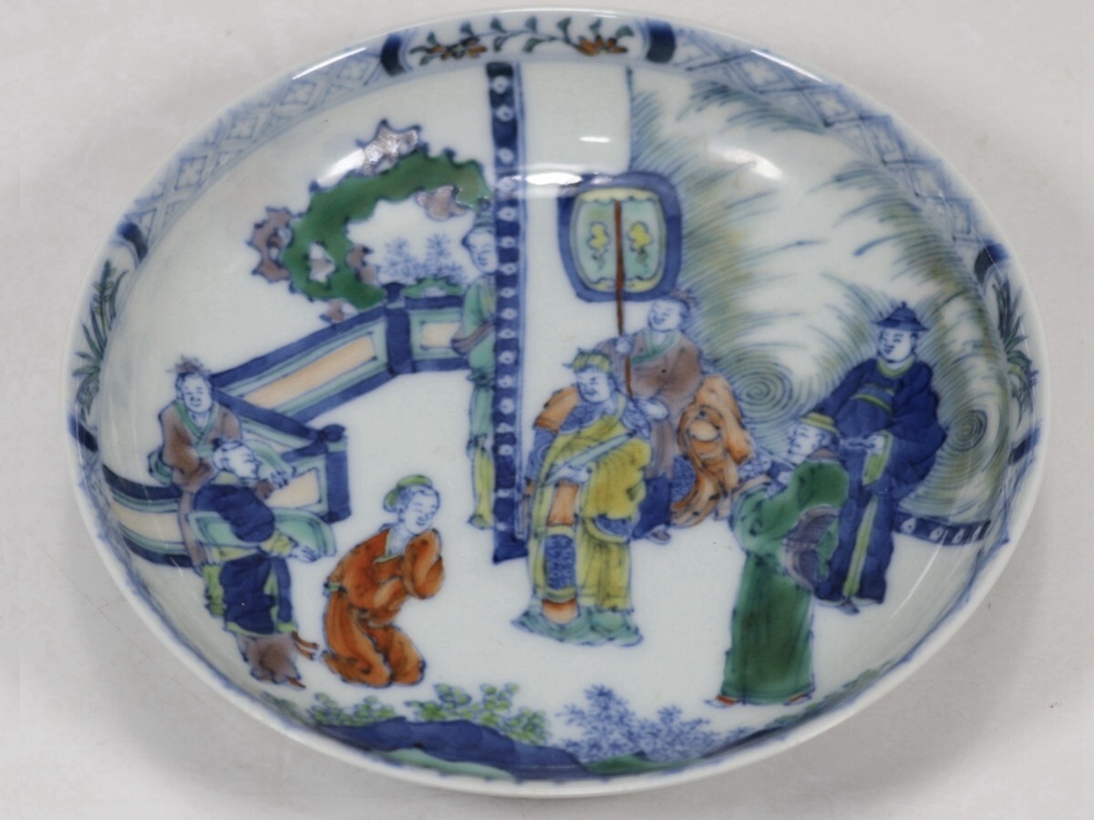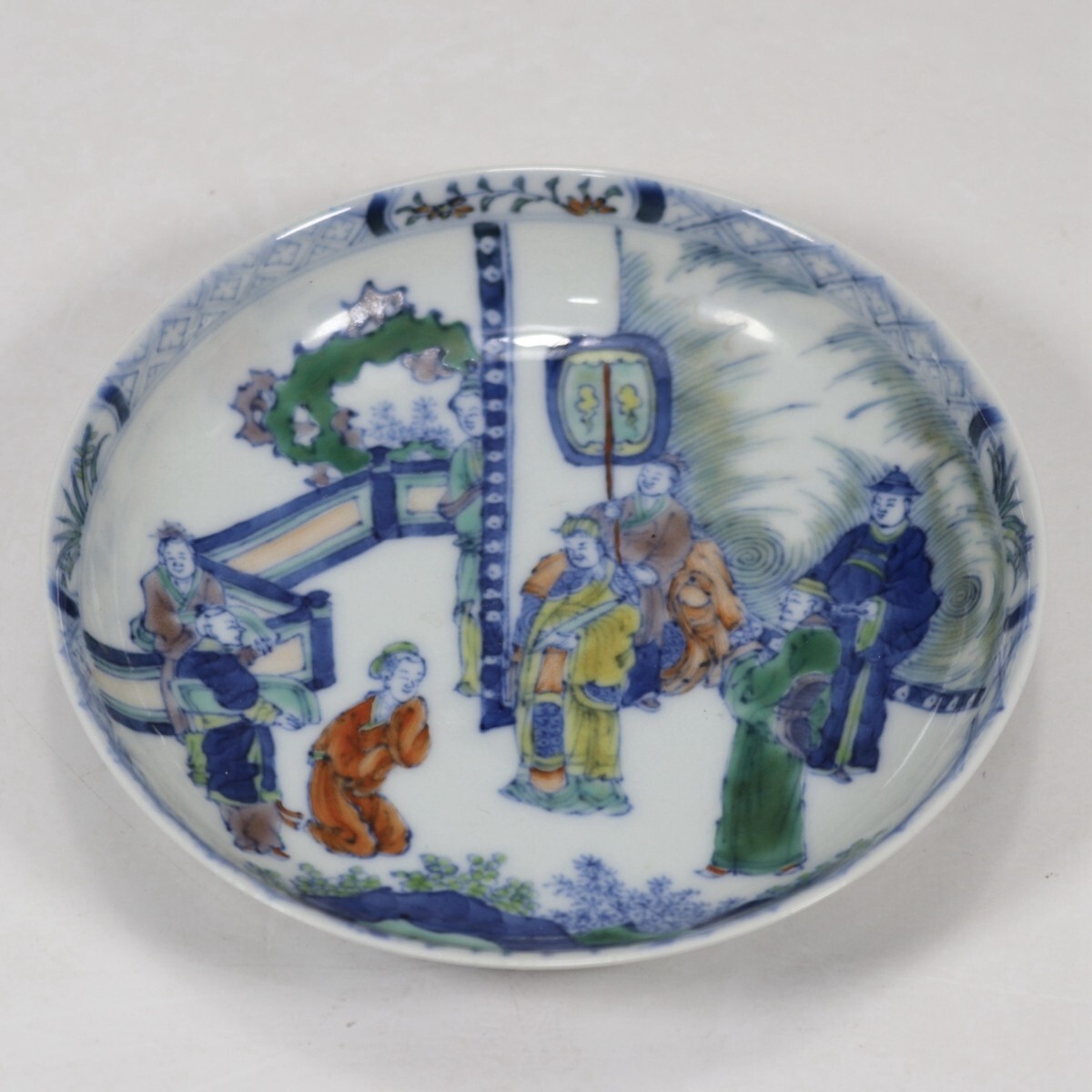 【瓏】陶磁器 青花五彩人物故事図小蝶 皿 大清康熙年製 染付 置物擺件 古賞物 古美術 陶芸 蔵出
