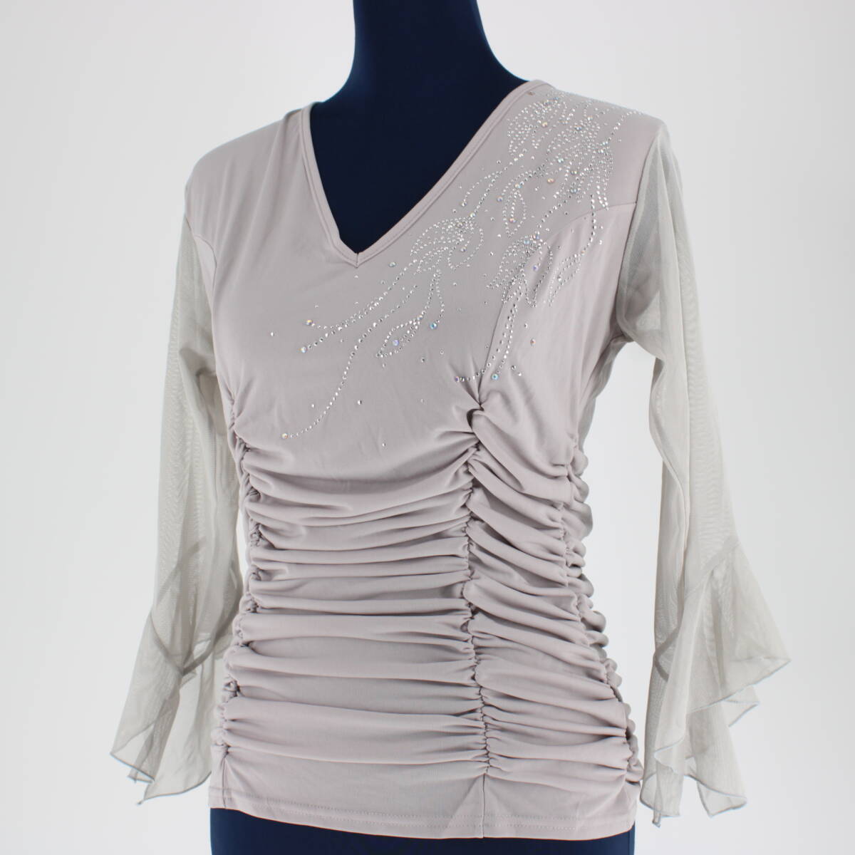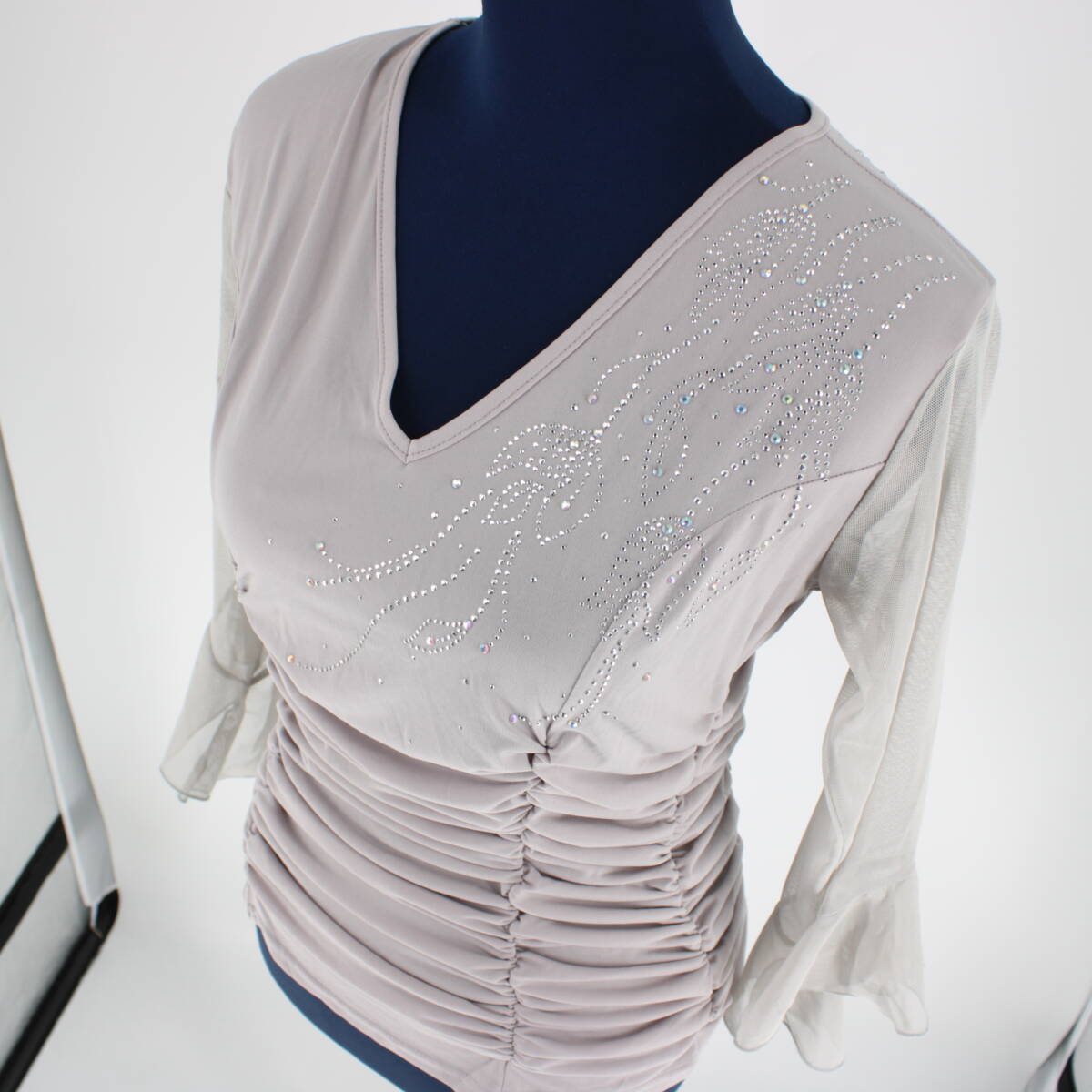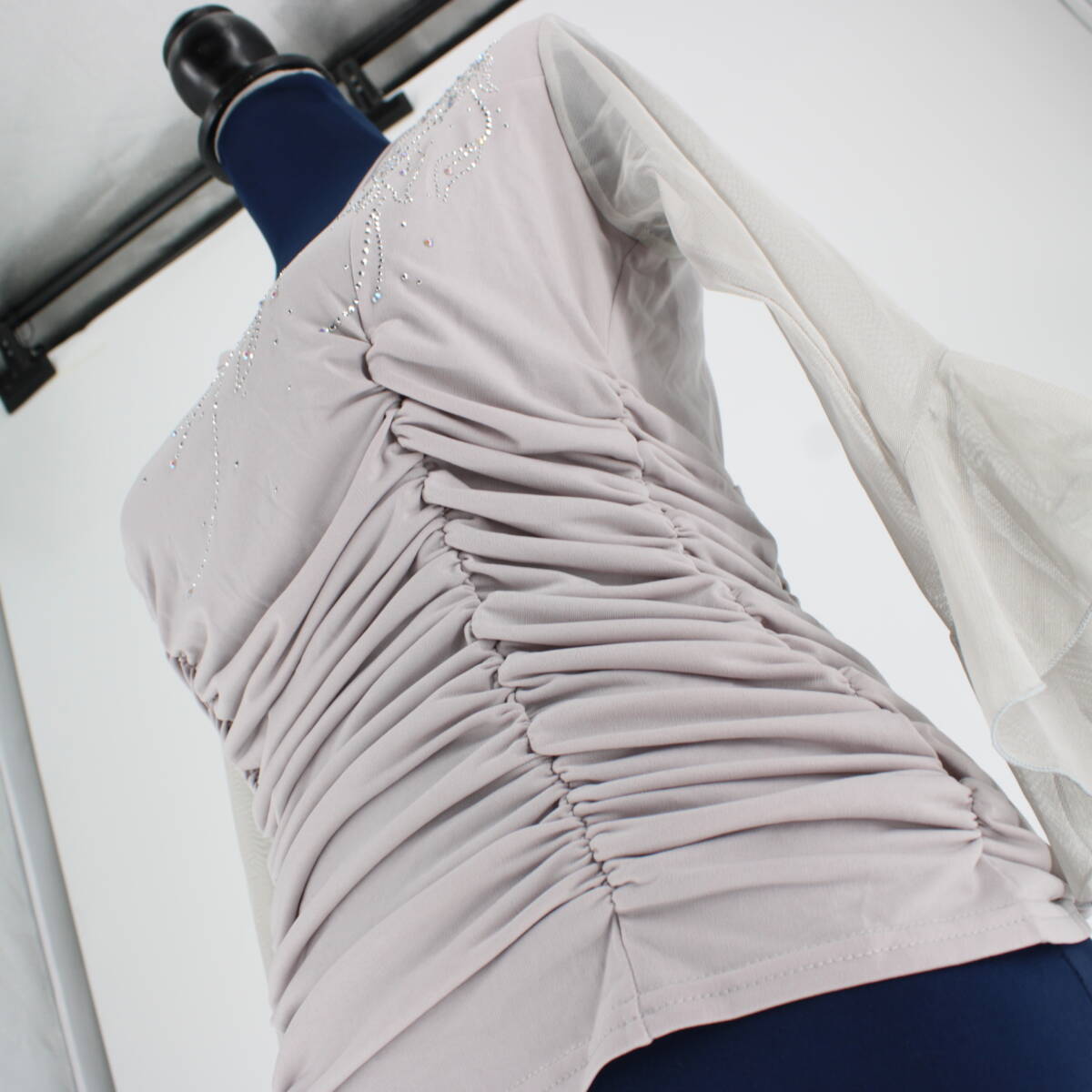 | 商品説明 | 【商品名】社交ダンス衣装 トップス 【サイズ】 平置き実測:総丈約50cm(裾~肩部まで)、肩幅約40cm、身幅約43cm、ウエスト約31cm~ ※実測の為、多少の誤差はご容赦願います 【仕様】 ・伸縮性有り ・胸パッド無し ・肩パッド無し ------------------------------------ 【ポイント】 ▽SICO-PON ▽爽やかなライトグレー ▽ラインストーン付き ------------------------------------ 【撮影時使用トルソー:女性用トルソー9号(一般的に使用されるサイズです)】 トルソーサイズ詳細 肩幅約37cm、バスト約88cm、ウエスト約66cm、ヒップ約89cm |