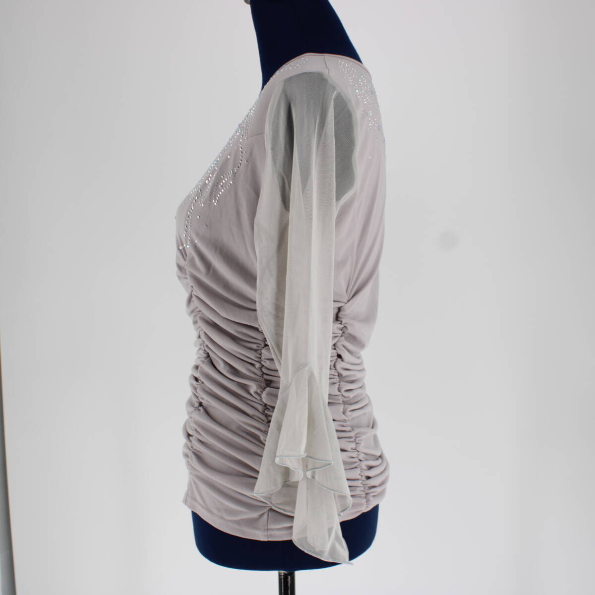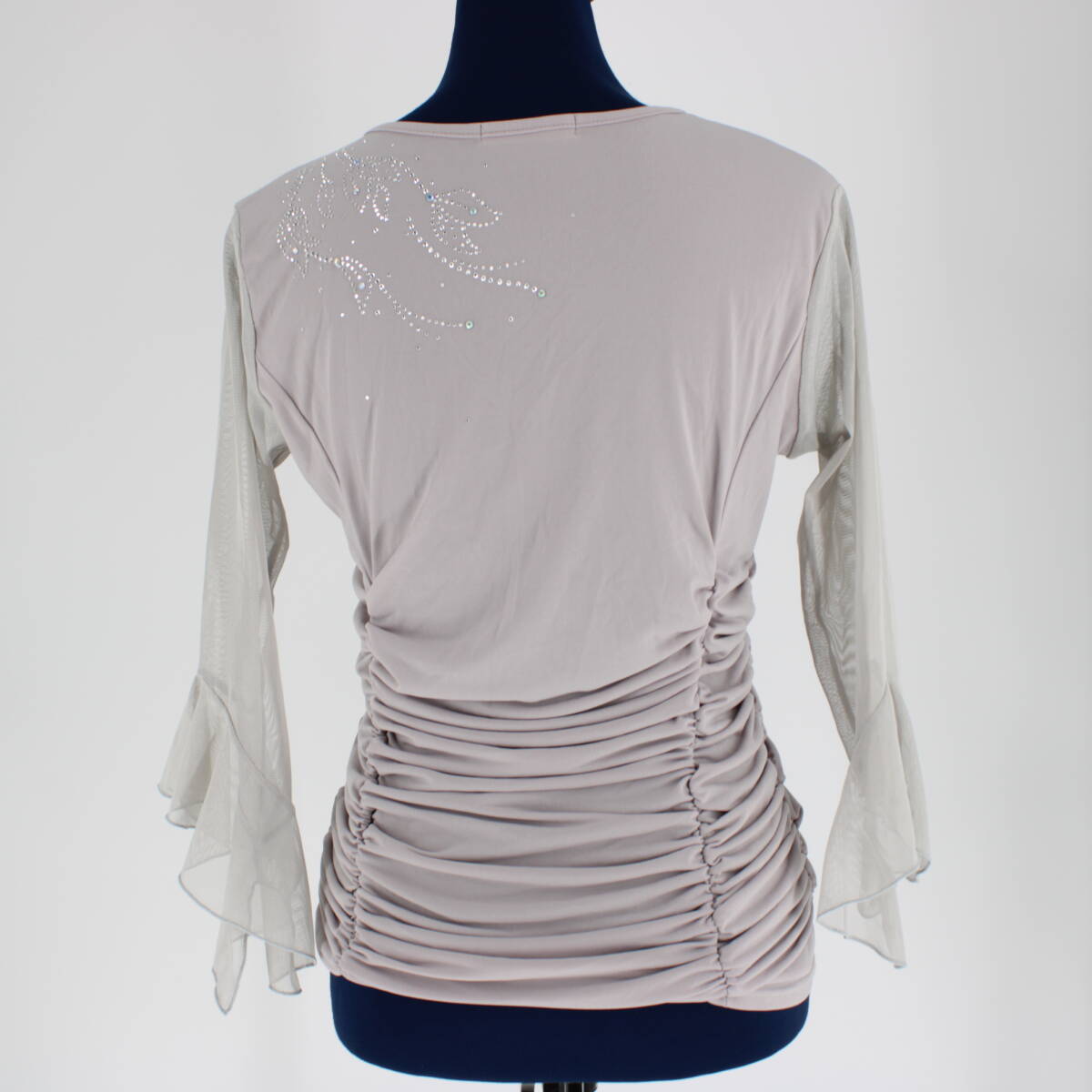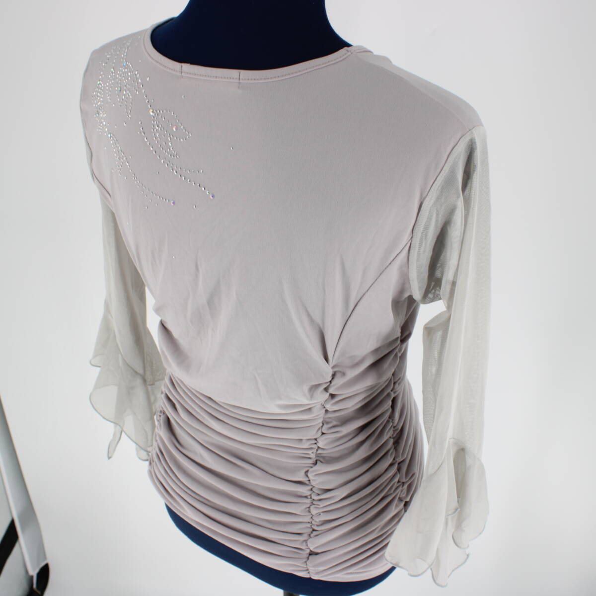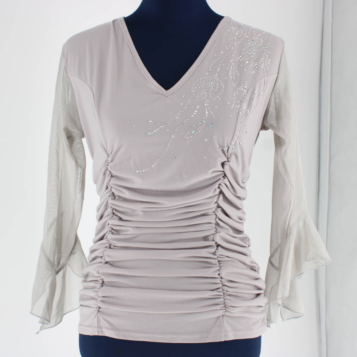 | 商品説明 | 【商品名】社交ダンス衣装 トップス 【サイズ】 平置き実測:総丈約50cm(裾~肩部まで)、肩幅約40cm、身幅約43cm、ウエスト約31cm~ ※実測の為、多少の誤差はご容赦願います 【仕様】 ・伸縮性有り ・胸パッド無し ・肩パッド無し ------------------------------------ 【ポイント】 ▽SICO-PON ▽爽やかなライトグレー ▽ラインストーン付き ------------------------------------ 【撮影時使用トルソー:女性用トルソー9号(一般的に使用されるサイズです)】 トルソーサイズ詳細 肩幅約37cm、バスト約88cm、ウエスト約66cm、ヒップ約89cm |