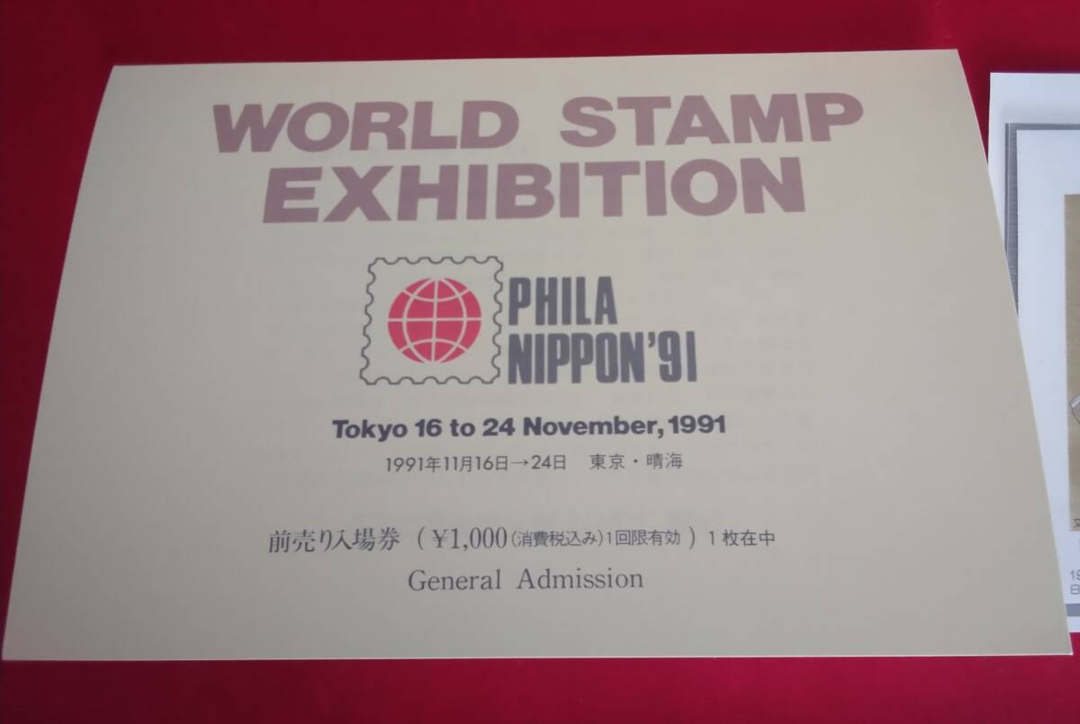 1991年に開催された国際切手展の入場券付き小型シートと初日印が押された小型シートです。