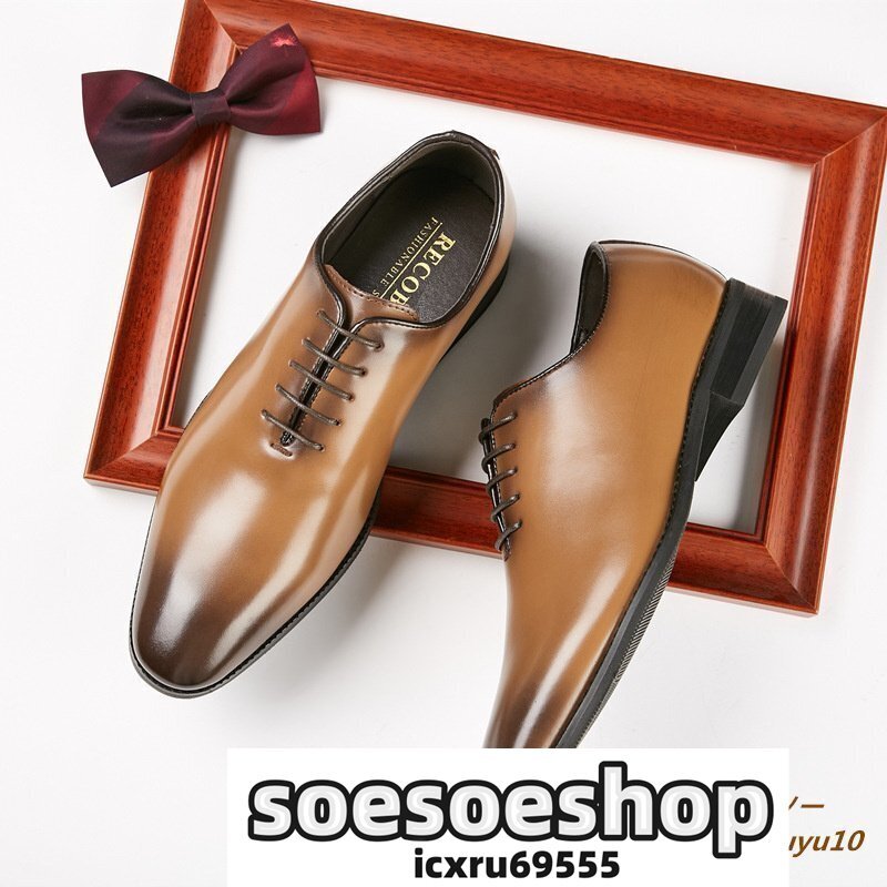 限定セール 本革 ビジネスシューズ 新品 メンズ レザーシューズ 個性 職人手塗仕上げ 牛革 紳士靴 フォーマル 通勤 ブラウン 25.0cm