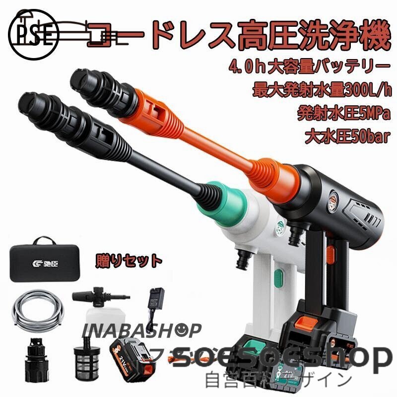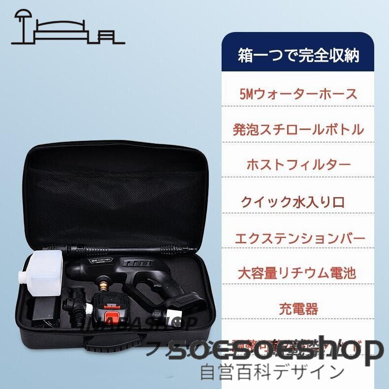 コードレス高圧洗浄機 50bar 50倍増圧 大容量バッテリー 家庭用 セット 安静 洗車 車掃除 車洗い充電式 外壁 掃除 収納ボックス ケース軽量
