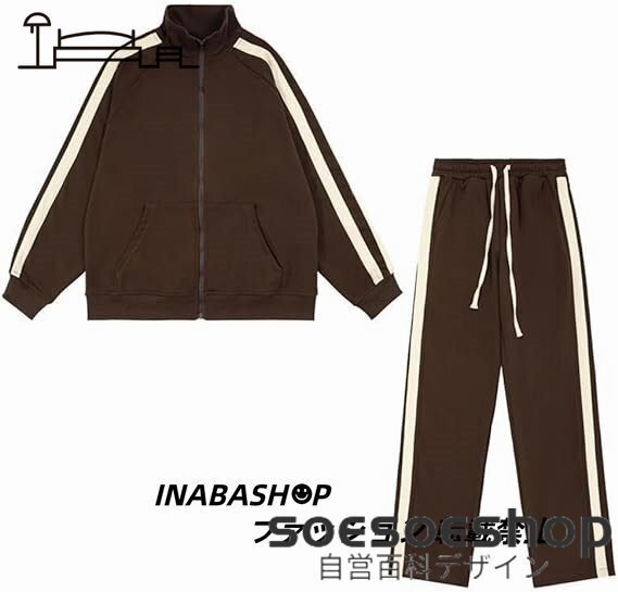 春秋 長袖 ライン ジャージ 上下セットアップ レディース トラックスーツ スポーツウェア スウェット カジュアル ゆったり 韓国風 男女兼用
