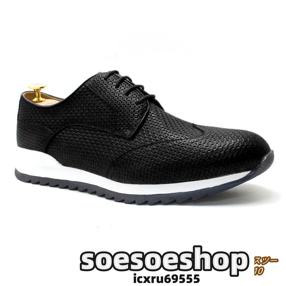 極美品*定価9万 スニーカー メンズ 本革 レザーシューズ 職人手作り ビジネスシューズ 牛革 ローファー スリッポン 押し柄 ブラック 28.0cm