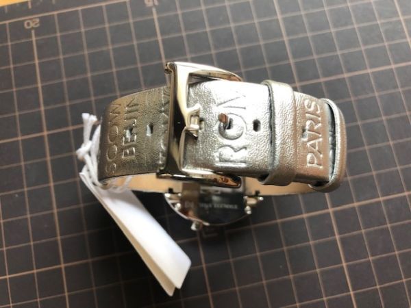 シルバーカラー、ロゴ文字盤、ストーンベゼル、