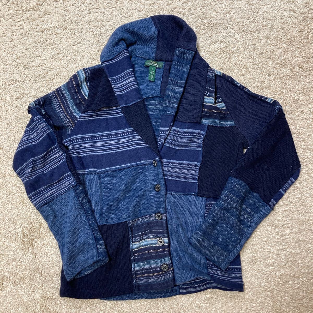 ラルフローレン ネイティブ インディゴ パッチワーク カーディガンです。