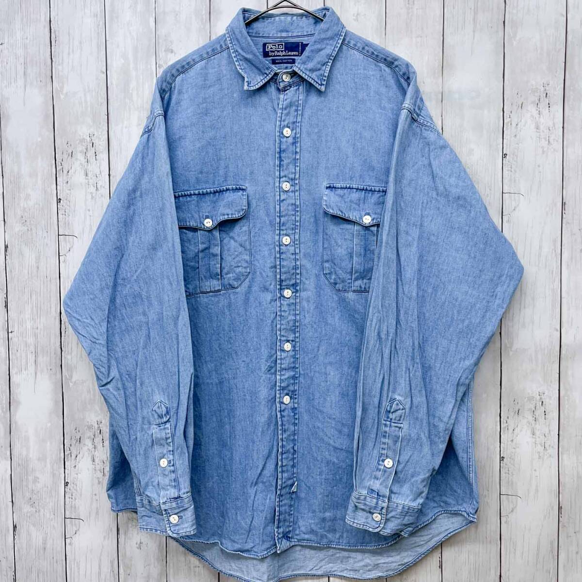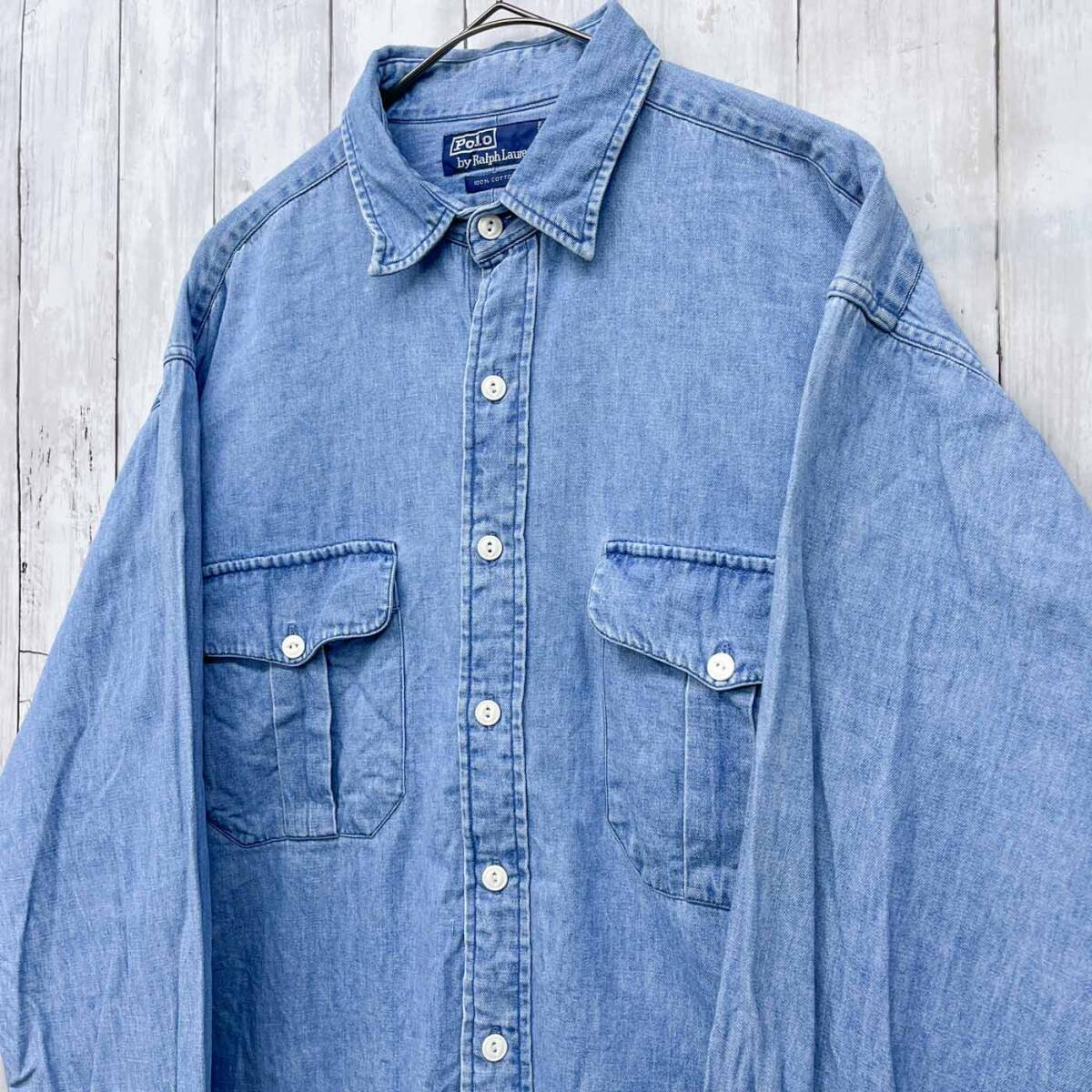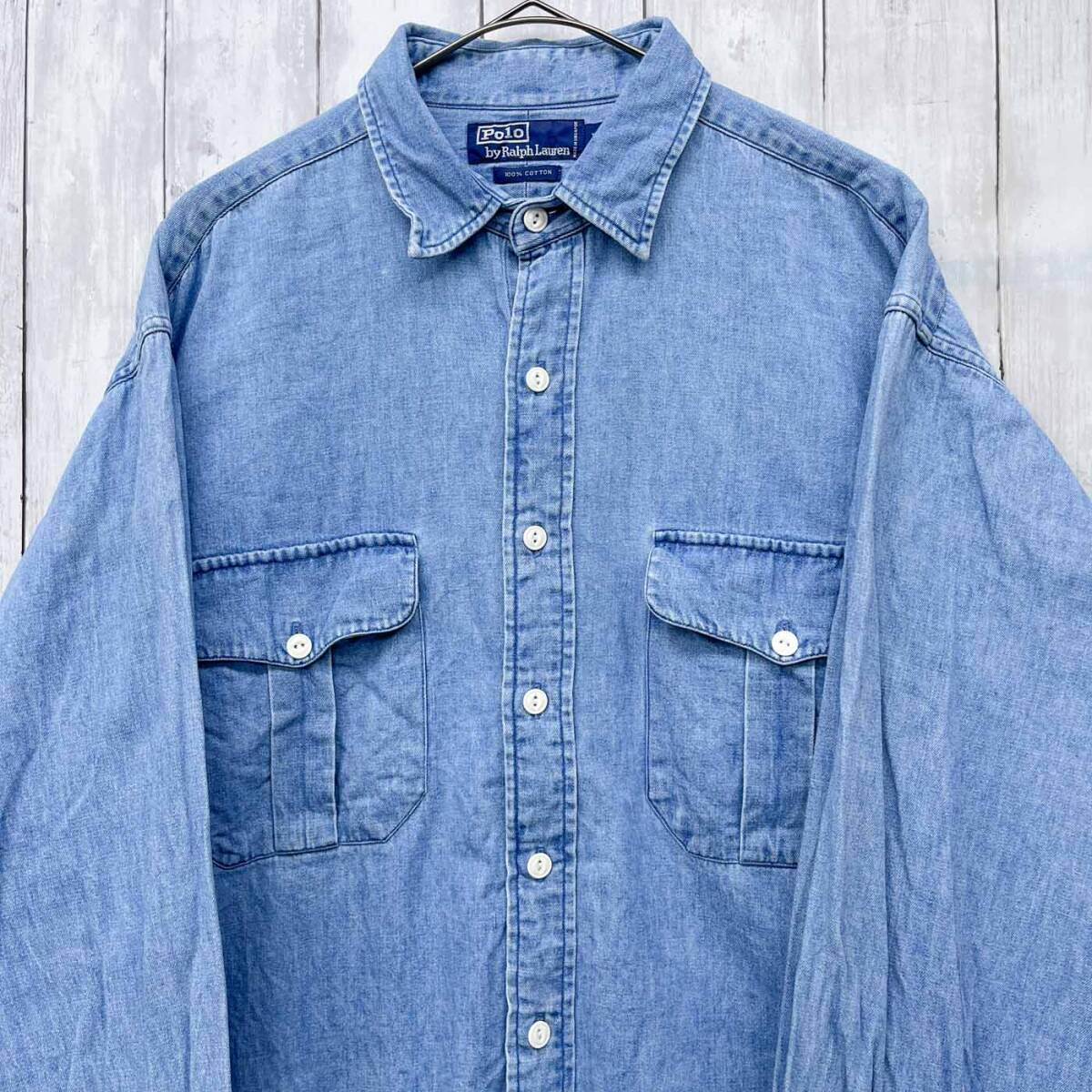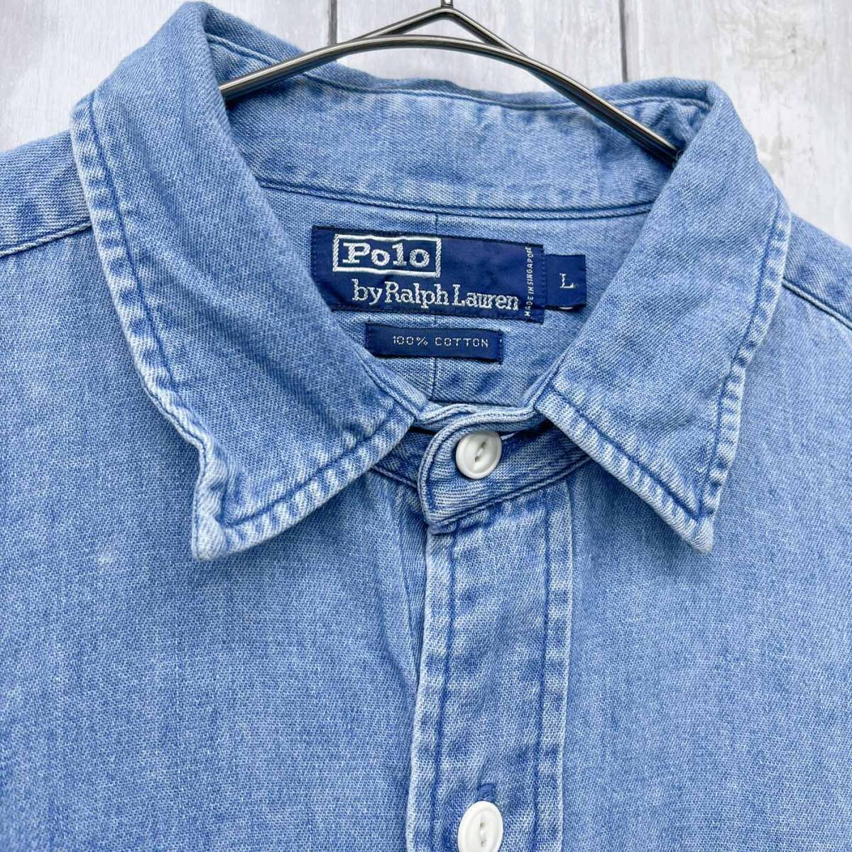 ラルフローレン Ralph Lauren デニムシャツ 長袖シャツ メンズ コットン100% Lサイズ 6-290