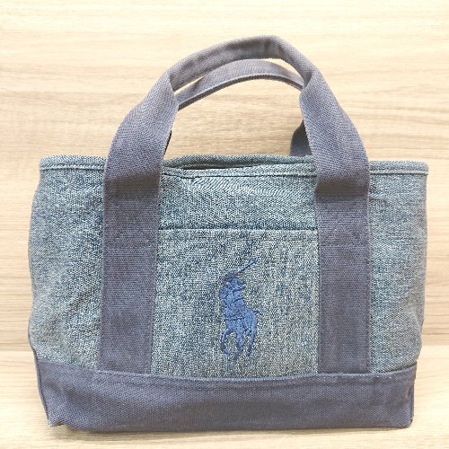 ◇ RALPH LAUREN デニム 刺繍 マグネットボタン お散歩 お買い物 トートバック ダークブルー レディース E