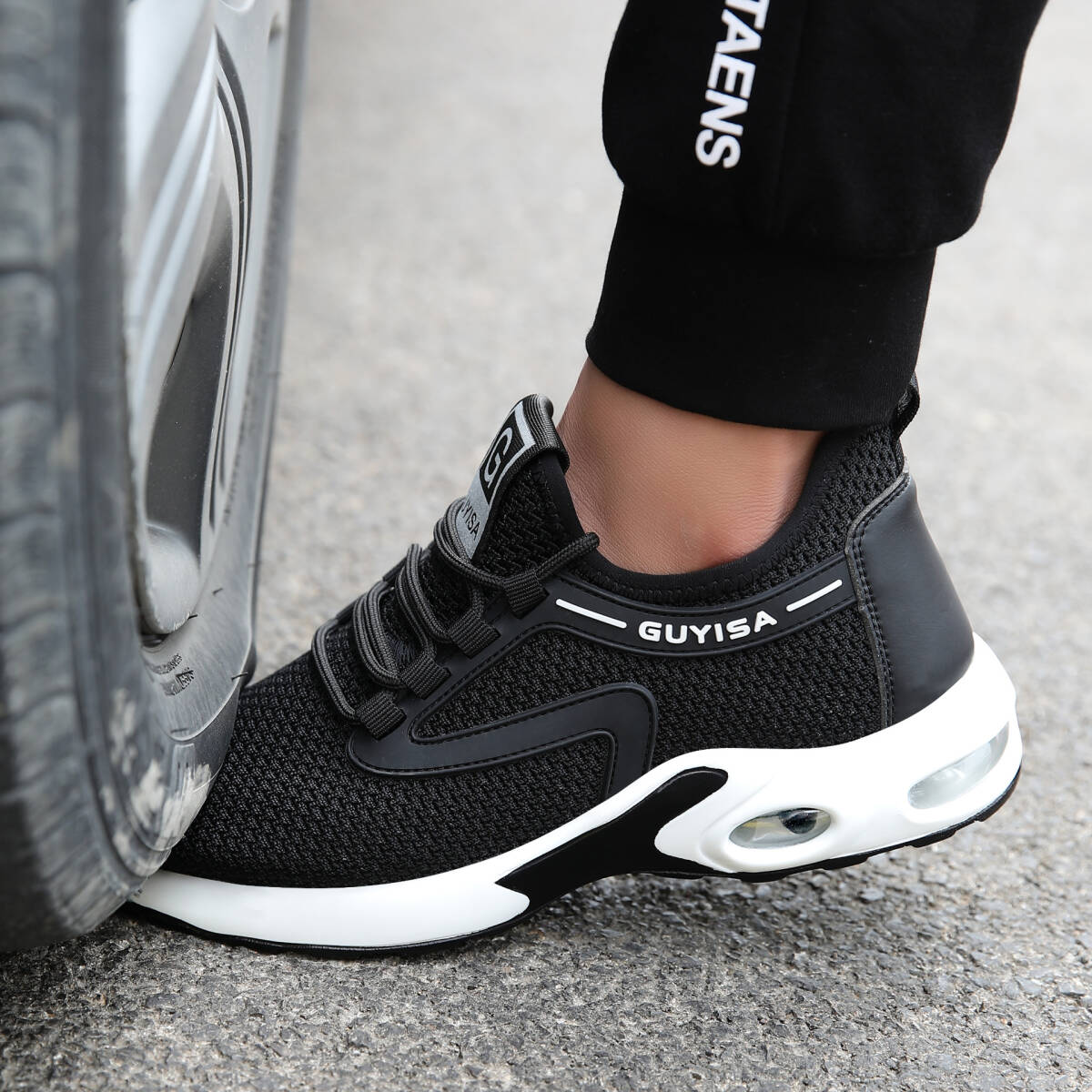 【通気性抜群】安全ブーツのアッパーは通気の編み物を採用する、通気性が抜群です。それに空気循環する特殊構造で、靴内の足ムレを軽減し快適です。履き心がいいです。