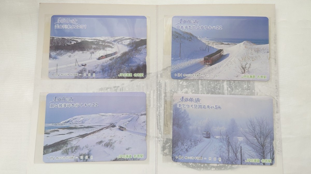●JR北海道●宗谷旅情 キハ22・キハ54ほか●記念オレンジカード1穴使用済み4枚組台紙付 宗谷本線抜海峠ほか