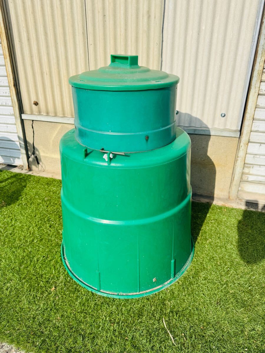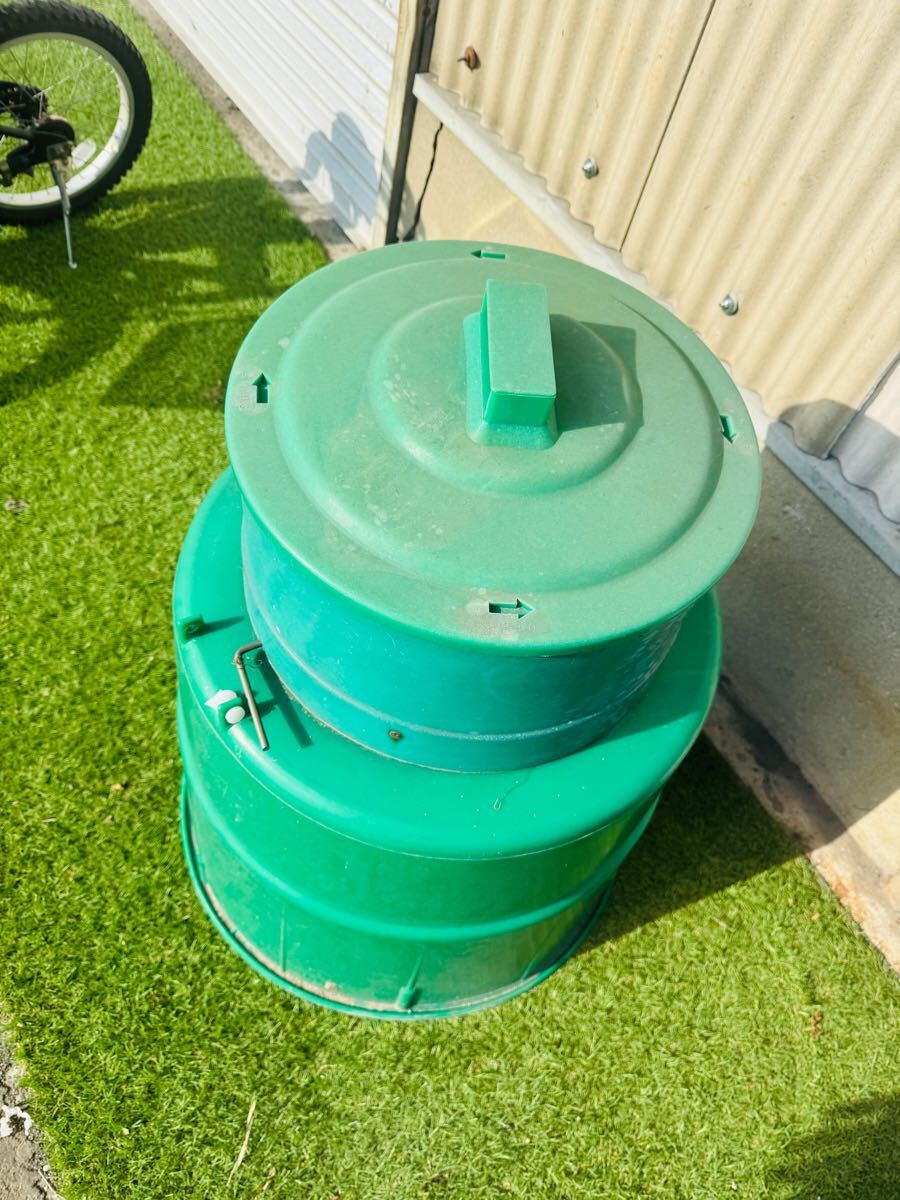 コラポンは生ごみ処理用のコンポストです。 生ゴミの処理と堆肥の製造を同時にできる容器です。