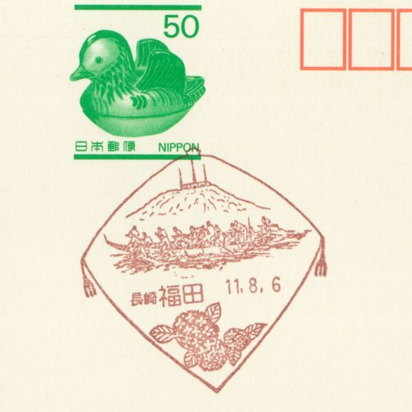風景印☆初日☆長崎・福田・H11.8.6