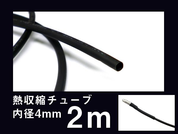 熱収縮チューブ 内径 4mm×2m ブラック 配線カバー 延長可 黒 絶縁 保護 被覆用/10Д