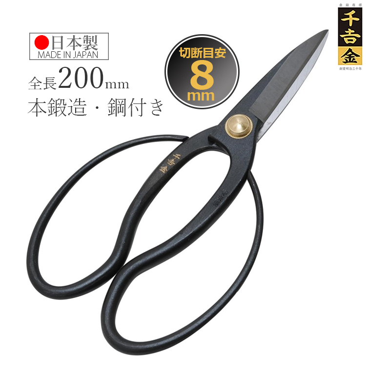 千吉金 長刃 大久保鋏 200mm 剪定ばさみ 剪定鋏 剪定バサミ 日本製 植木 盆栽 道具 整枝