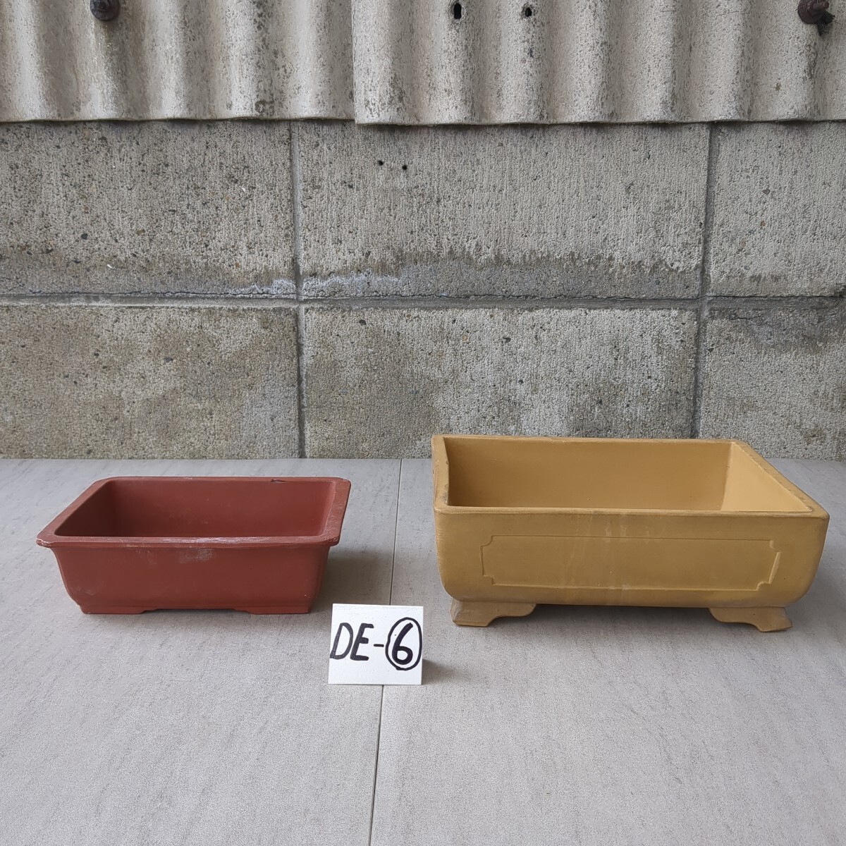 盆栽鉢 長角エン付 6号 / 長角切立額入 8号  2個 中古 DE-⑥   雑木 皐月 松柏 盆栽