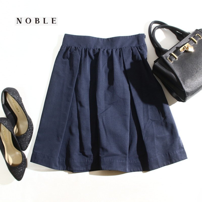 美品 NOBLE ノーブル 株) フレームワークス 合物 ほんのり艶 ギャザースカート 7号 36 淡い ネイビー 紺 シンプル 無地 スカート 通勤