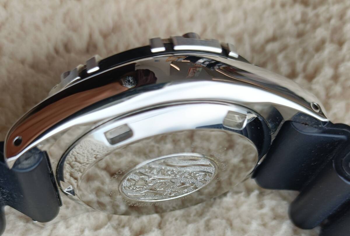 デザイン面では、回転ベゼル上に施した6本のビスやイオンプレーティング加工によるカーボンカラーと周囲のメタルカラーとのコントラストが、時計全体にスタイリッシュな雰囲気を与え、日常用の腕時計としても使用できるように配慮している。」