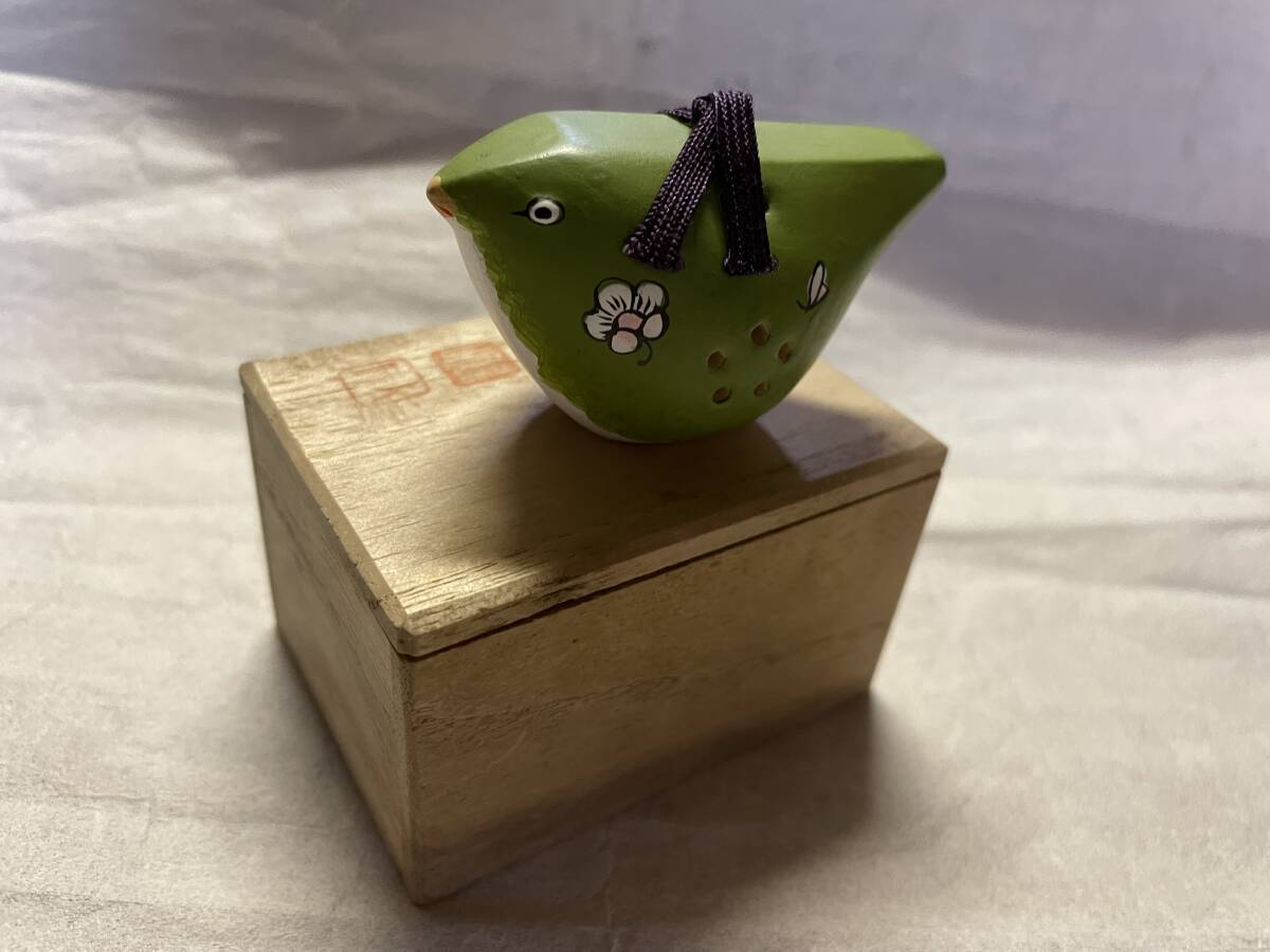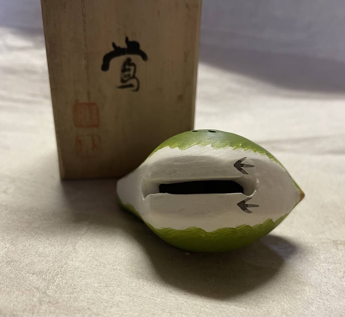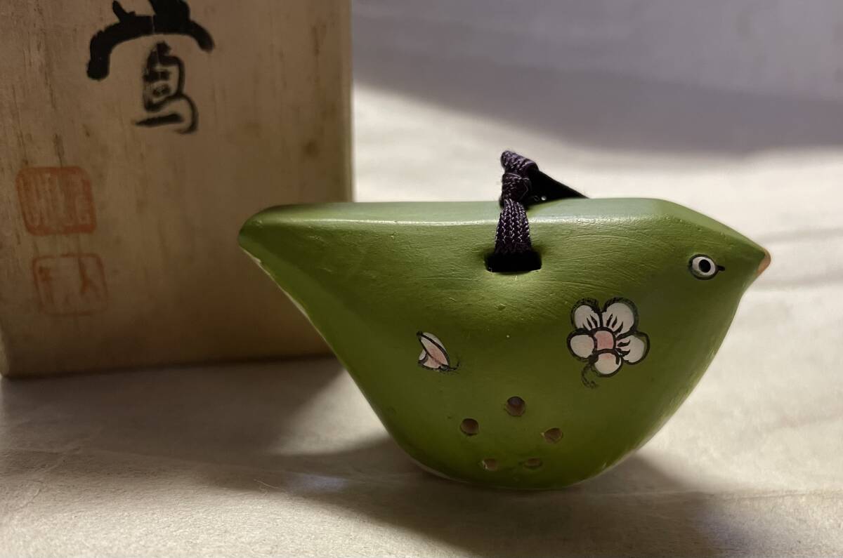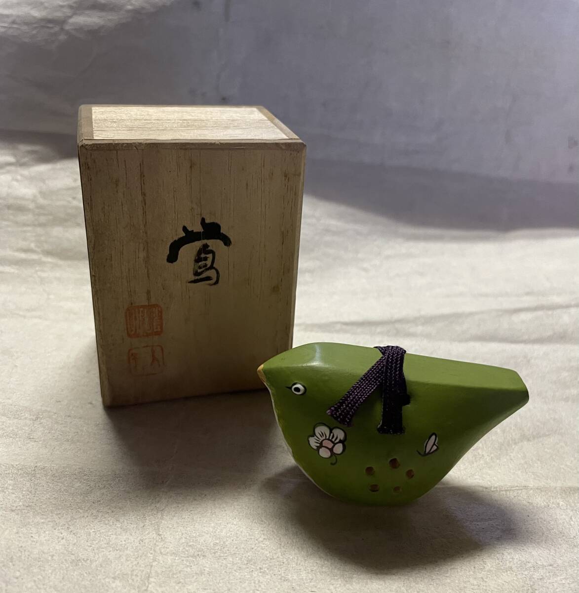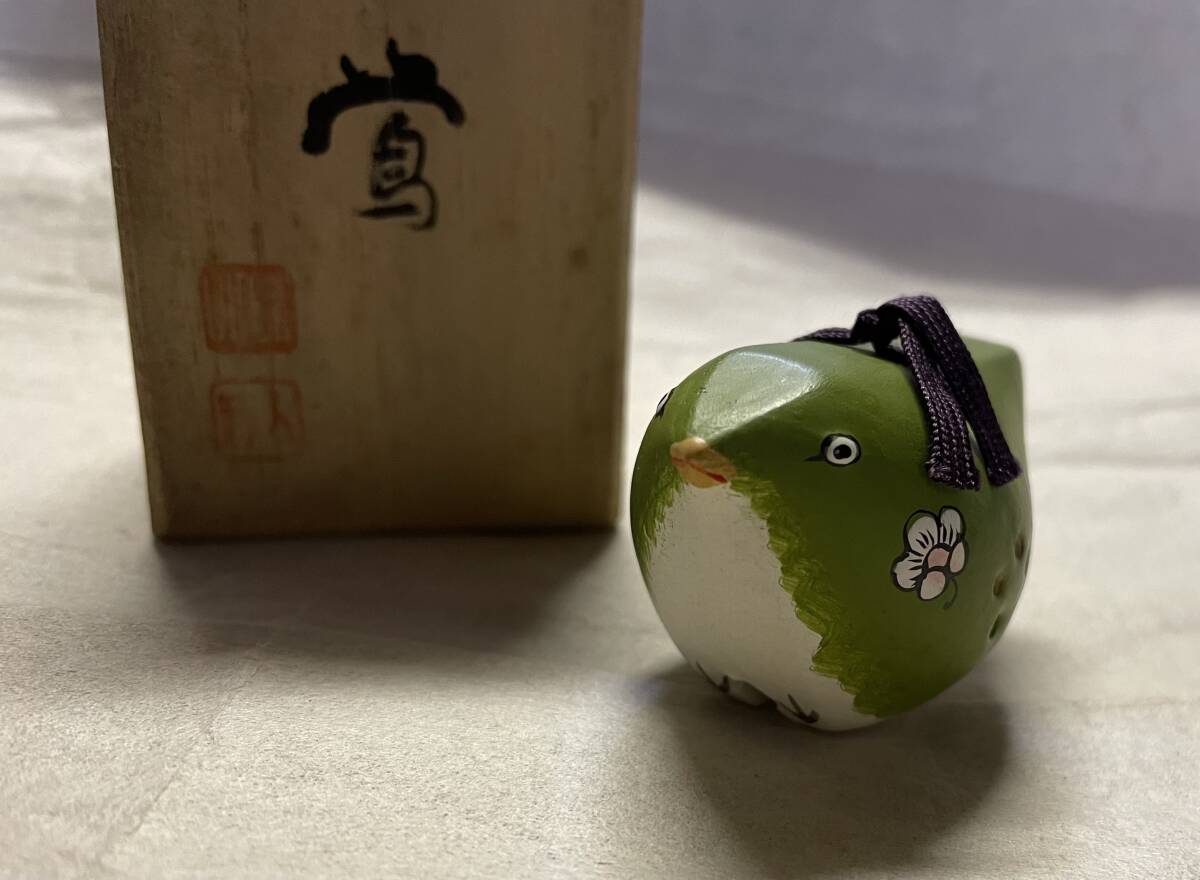 古い土鈴 鶯 うぐいす ウグイス 井浦人形 嵯峨野 置物 郷土玩具 ■ 共箱あり