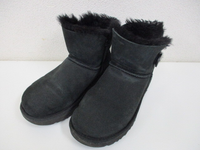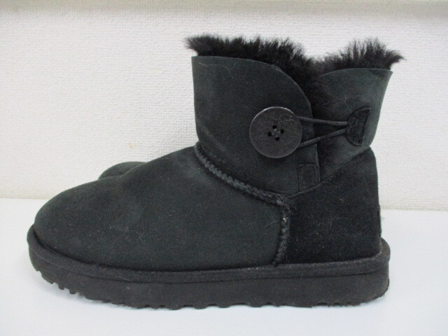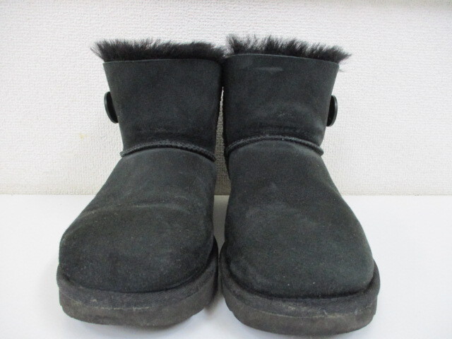 UGG アグ ミニ ベイリーボタン2 1016422 ショートブーツ 24㎝ ムートン 黒 中古品 激安1円スタート